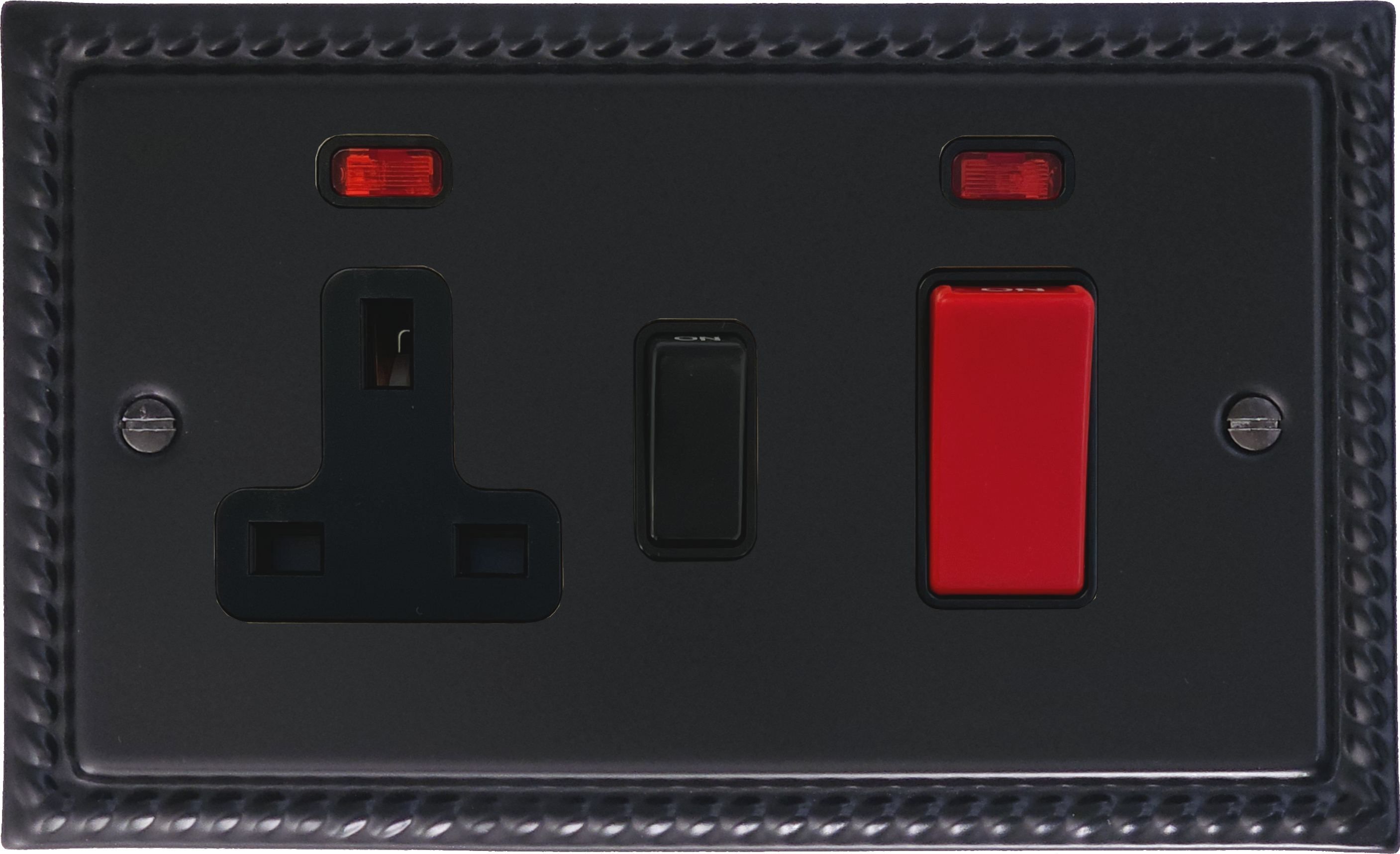Georgian Black Cooker Switch with Socket (Black Switch) GE.29B.FB