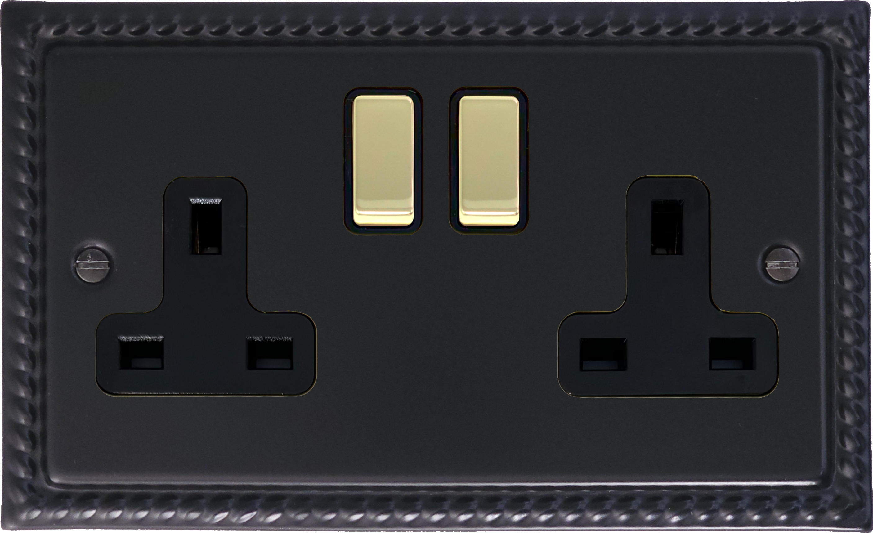 Georgian Black Double Socket (Black Insert/Polished Brass Switches) GE.310PB.FB