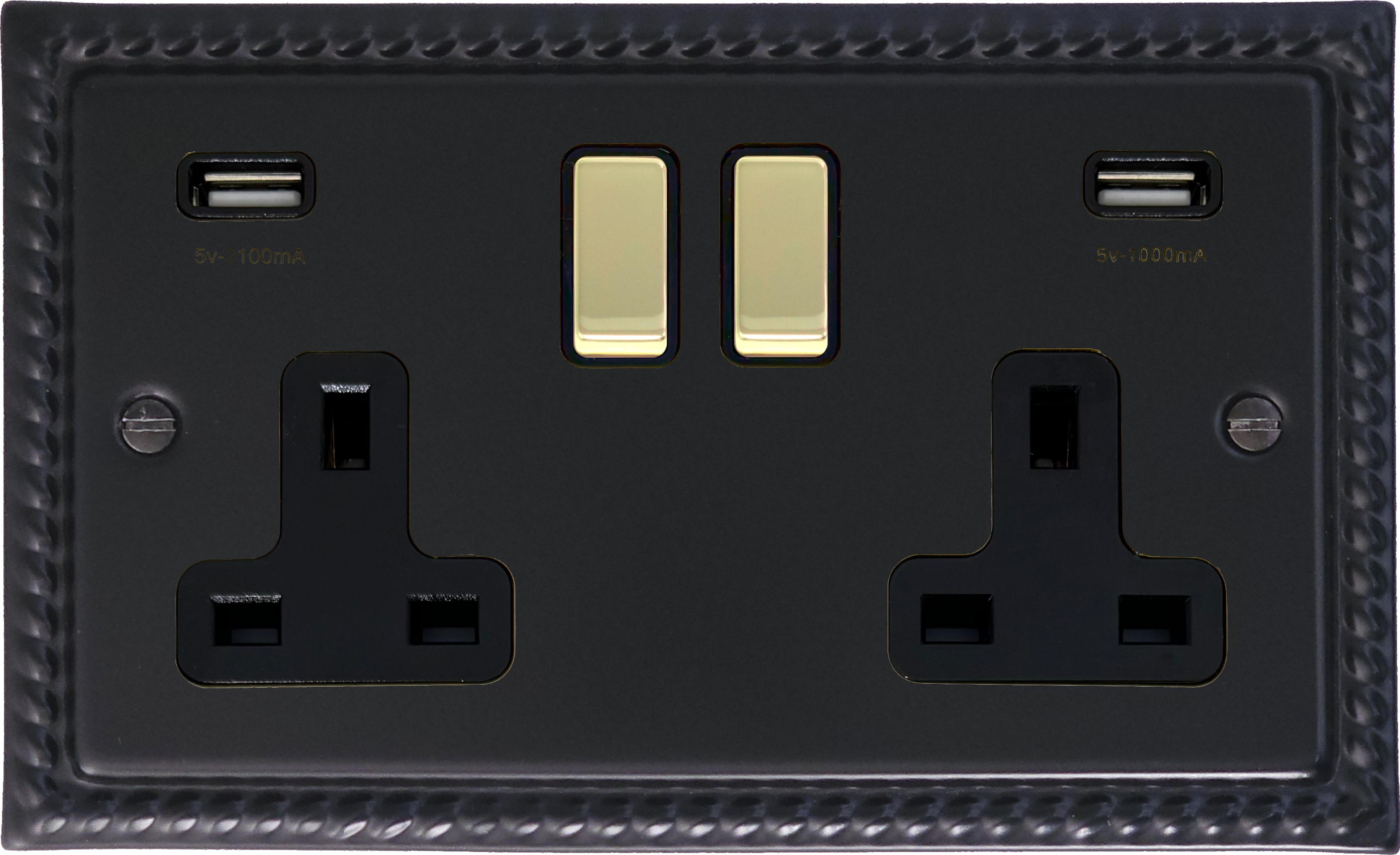 Georgian Black Double Socket with USB (Black Inserts/Polished Brass Switches) GE.3910PB.FB