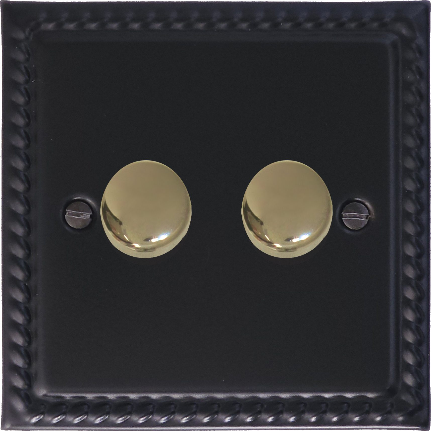 Georgian Black LED Dimmer (2 Gang/Brass Caps) GE.522PB.FB