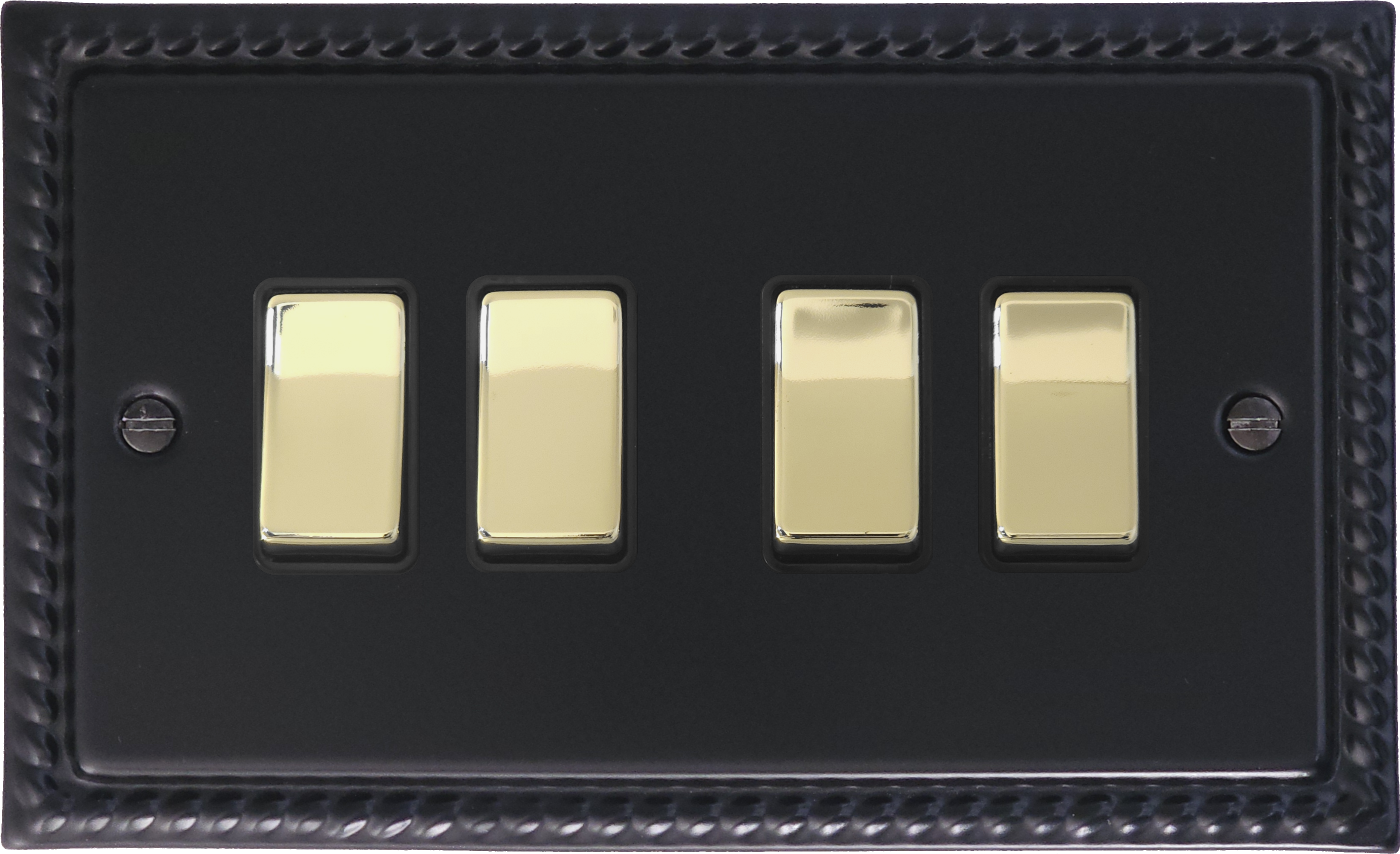 Georgian Black Light Switch (4 Gang/Black Insert/ Polished Brass Switches) GE.304PB.FB