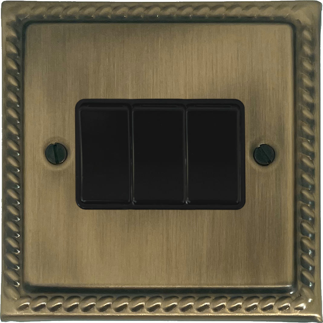 Georgian Light Antique Brass Light Switch (3 Gang/Black Switches) GE.3B.LAB