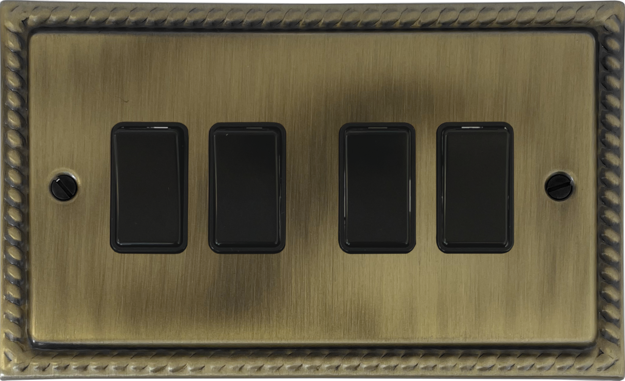 Georgian Light Antique Brass Light Switch (4 Gang/Black Switches) GE.4B.LAB