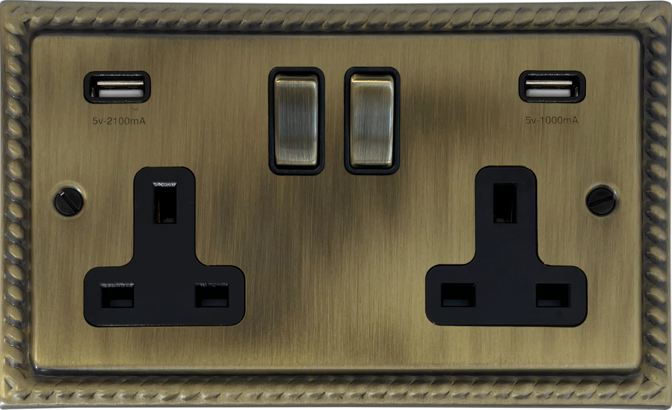 Georgian Light Antique Brass Socket with USB (2 Gang) GE.3910.LAB