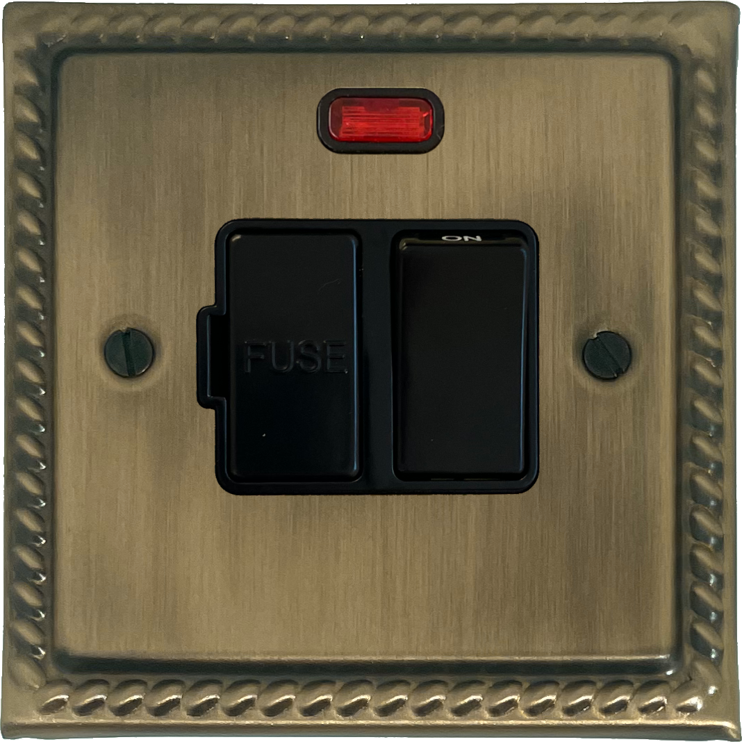 Georgian Light Antique Brass Switched Fused Spur with Neon (Black Switches) GE.27B.LAB