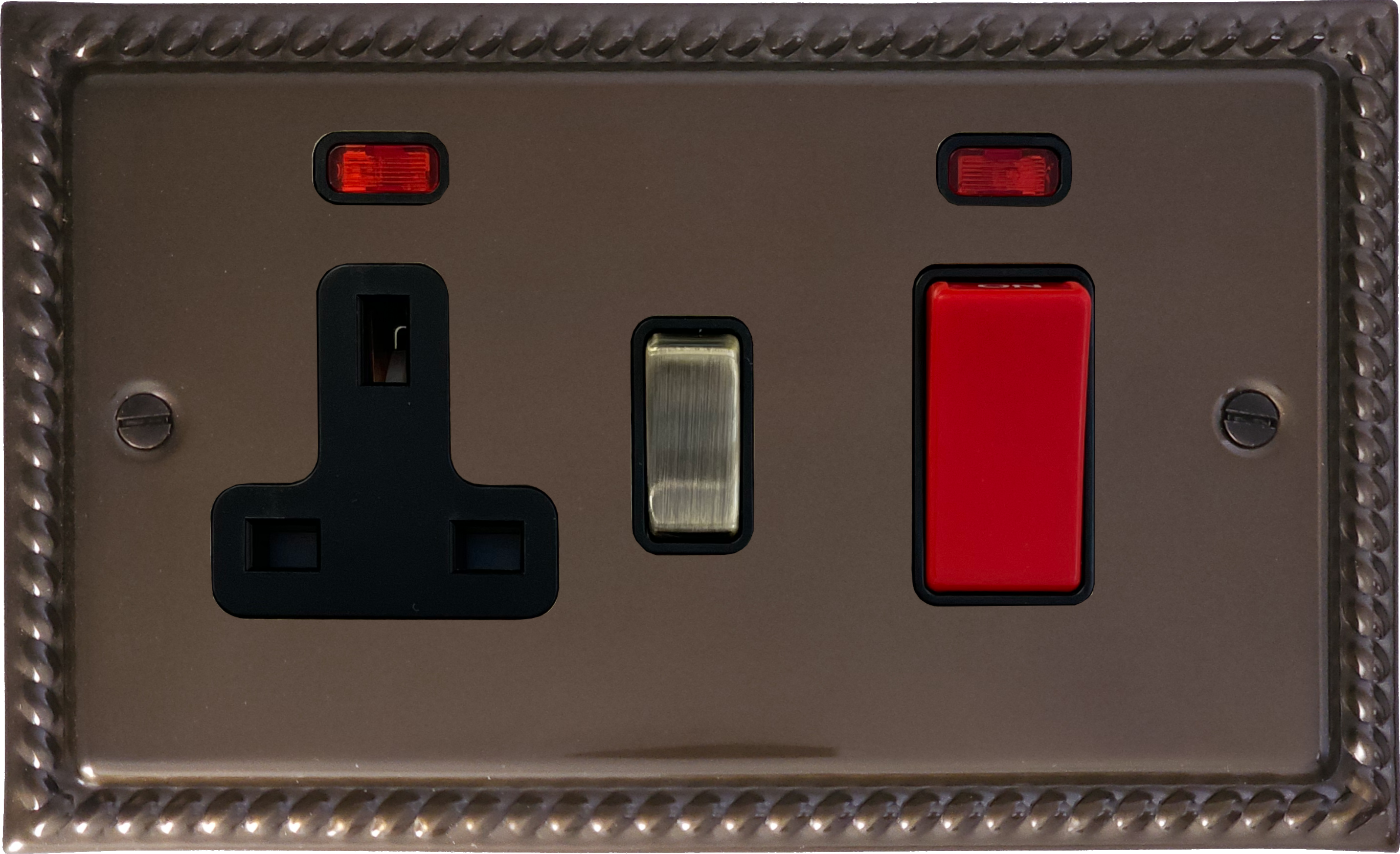 Georgian Medium Bronze Cooker Switch with Socket (Antique Brass Switch) GE.329AB.MBZ
