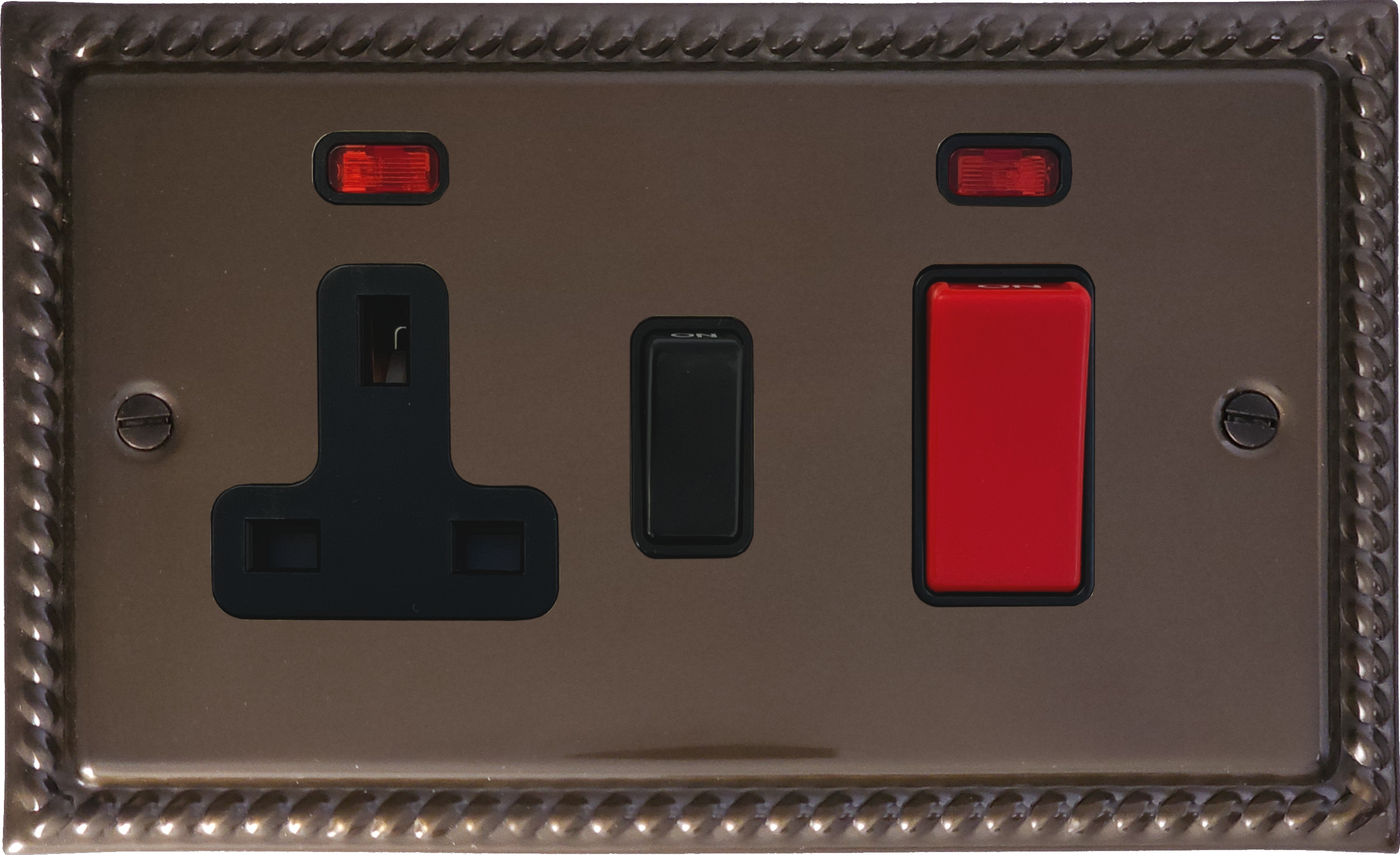Georgian Medium Bronze Cooker Switch with Socket (Black Switch) GE.29B.MBZ