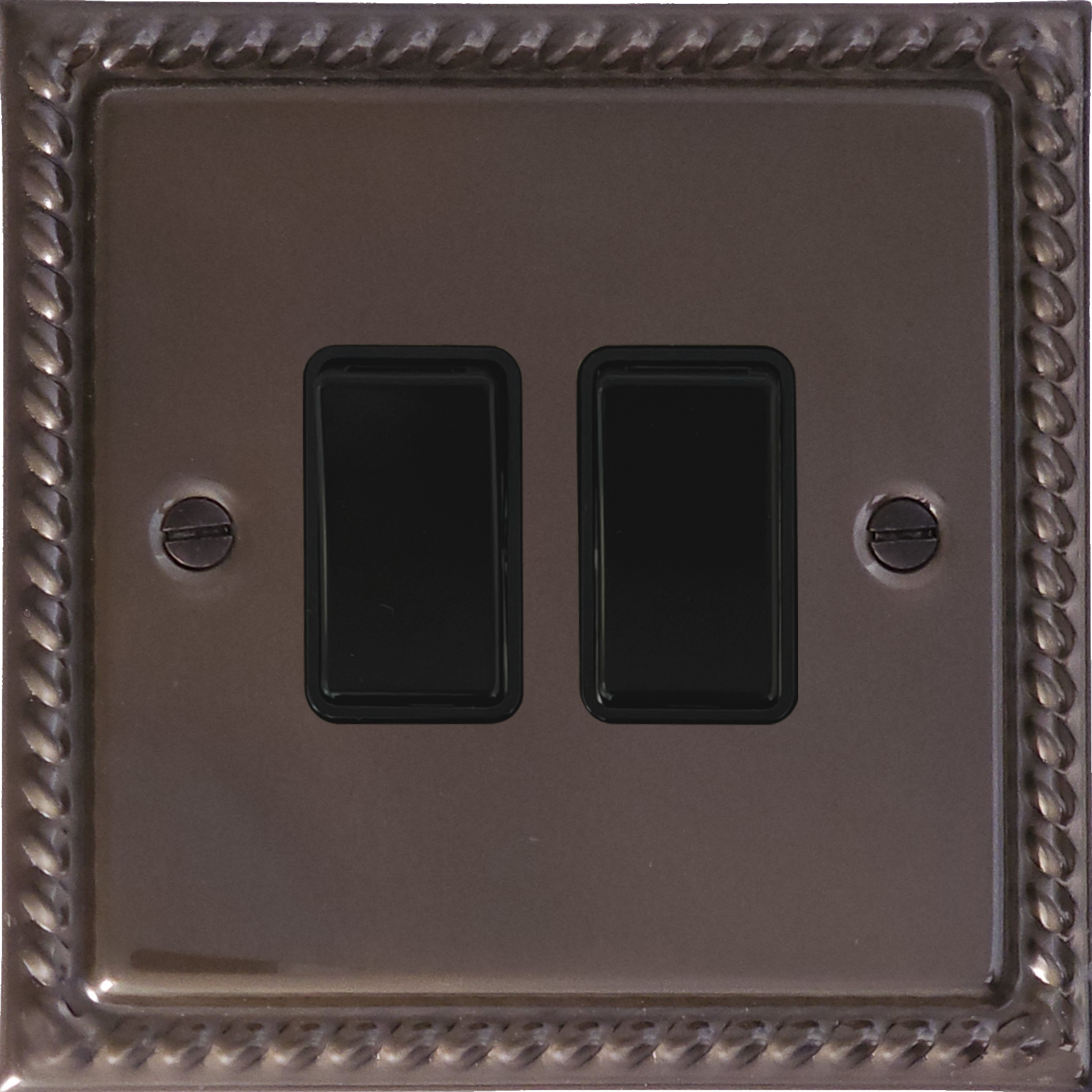 Georgian Medium Bronze Light Switch (2 Gang/Black Switches) GE.2B.MBZ