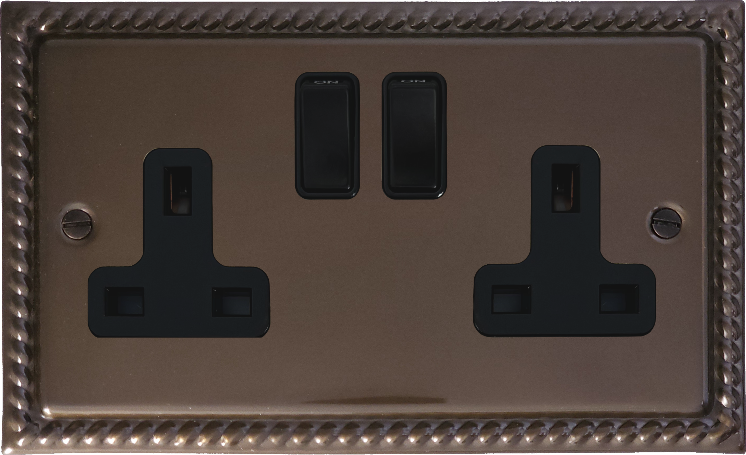Georgian Medium Bronze Socket (2 Gang/Black Switches) GE.10B.MBZ