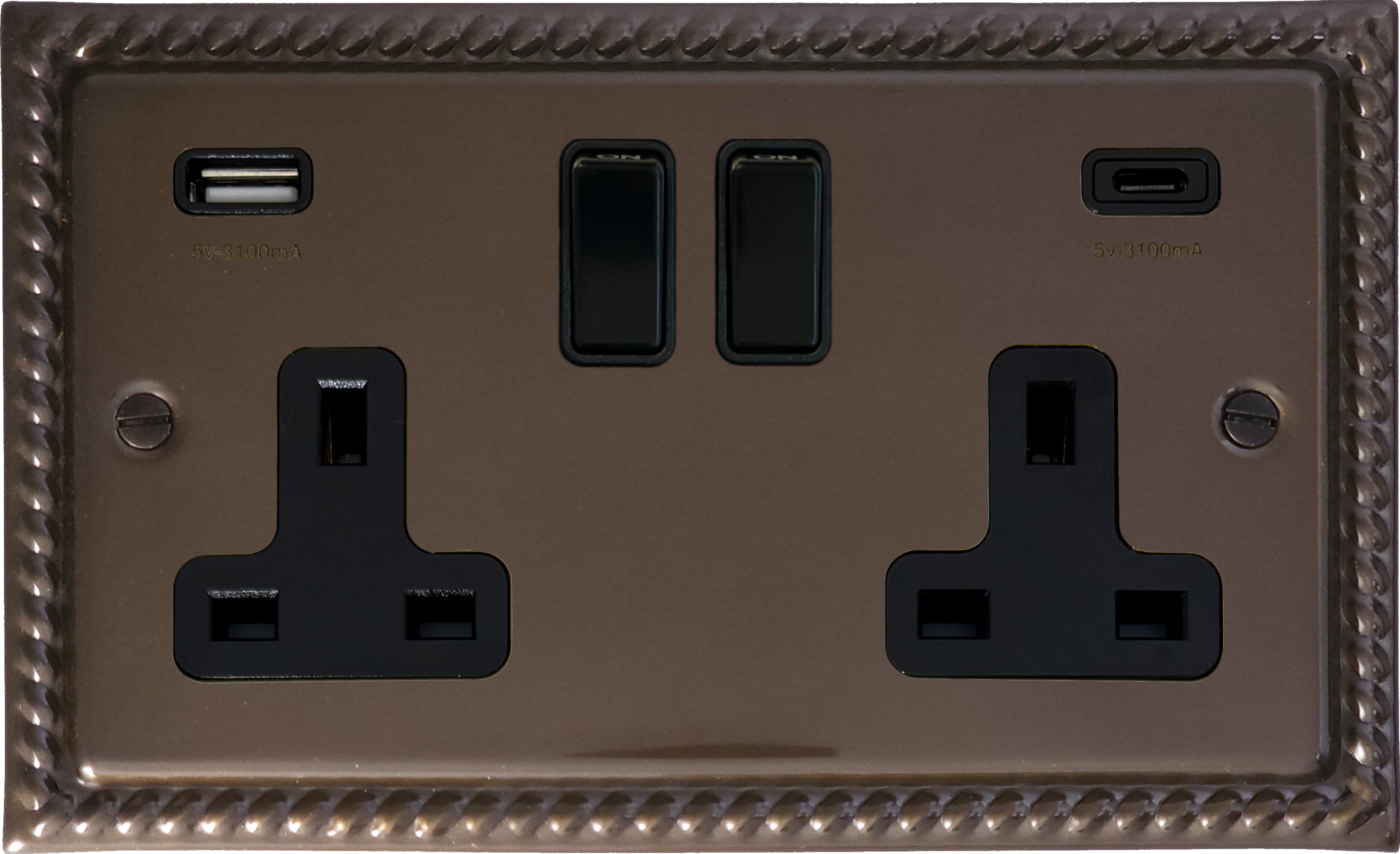 Georgian Medium Bronze Socket with USB (2 Gang/USB-A and USB-C/Black Switches) GE.911B.MBZ
