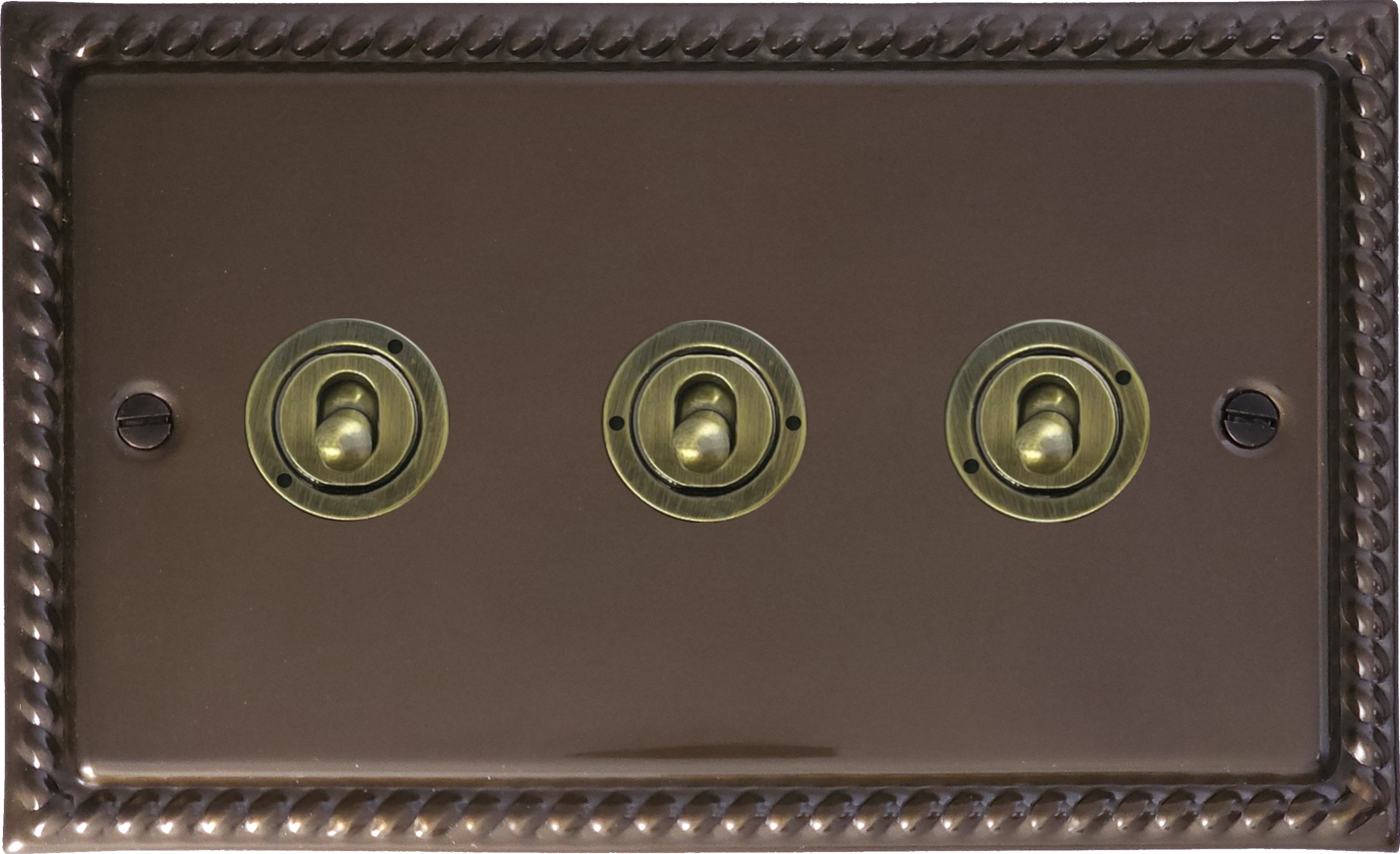 Georgian Medium Bronze Toggle Switch (3 Gang/Antique Brass Toggle) GE.383AB.MBZ