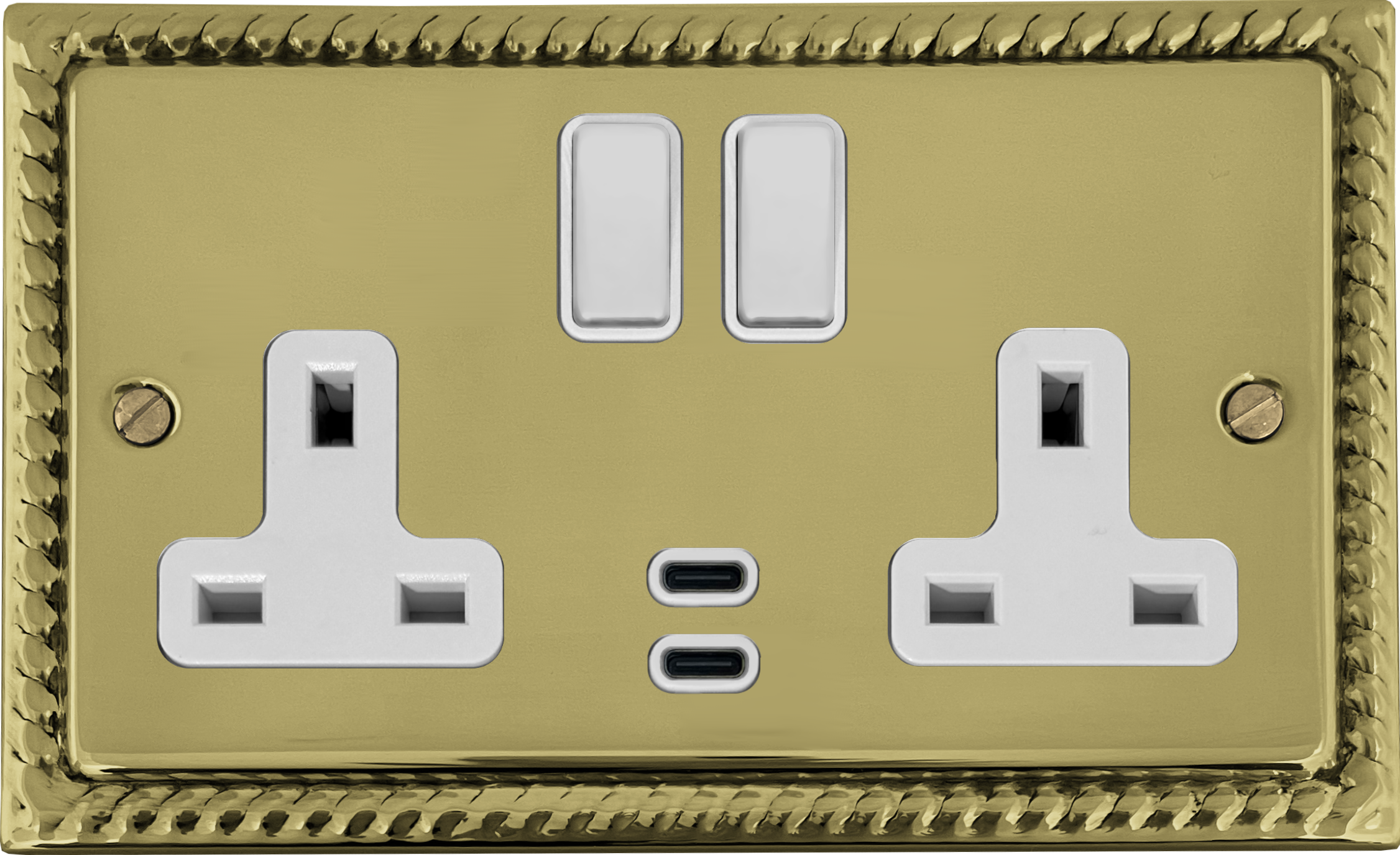 Georgian Polished Brass Double Socket with Dual USB-C (White Switches) GE.913W.B