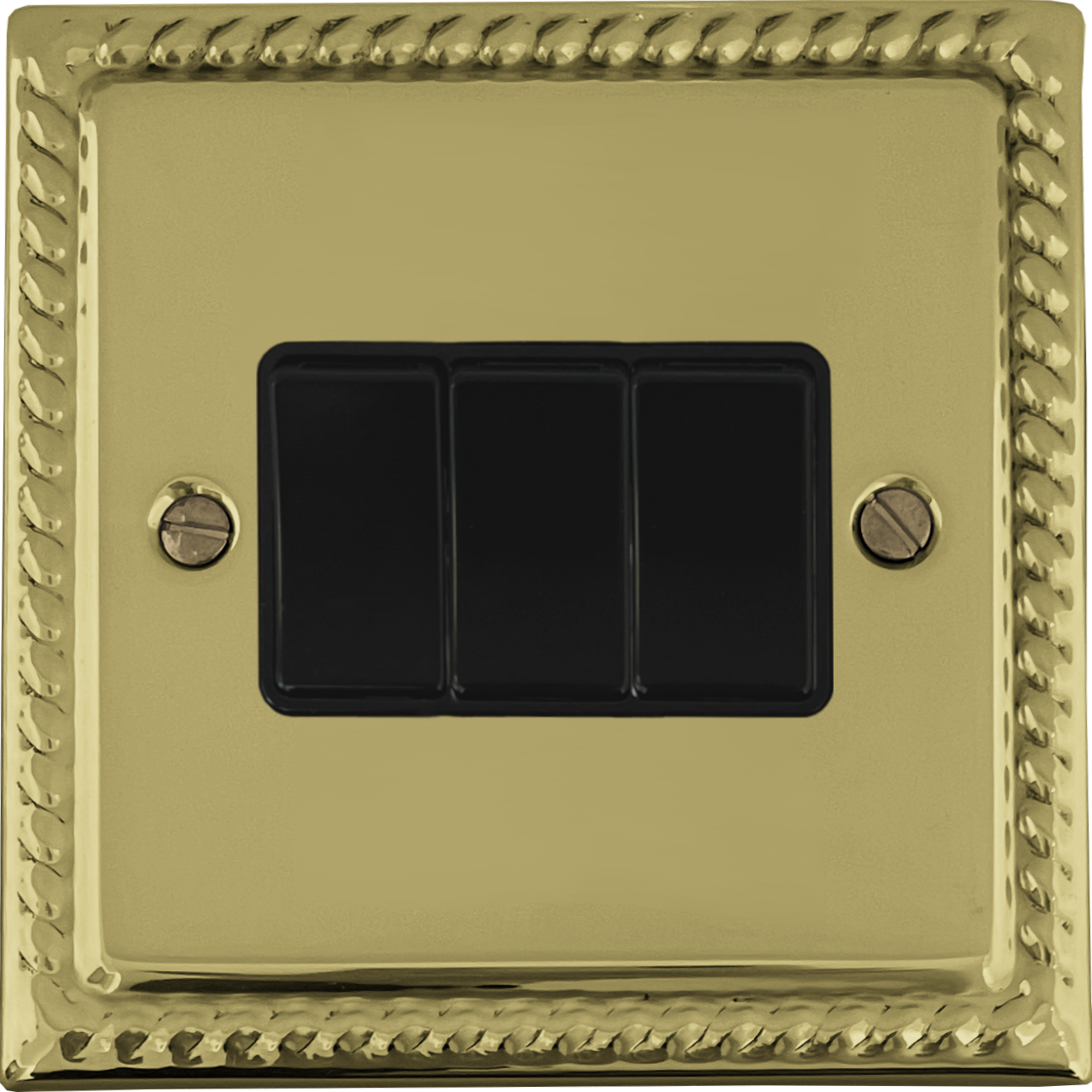 Georgian Polished Brass Light Switch (3 Gang/Black Switches) GE.3B.B