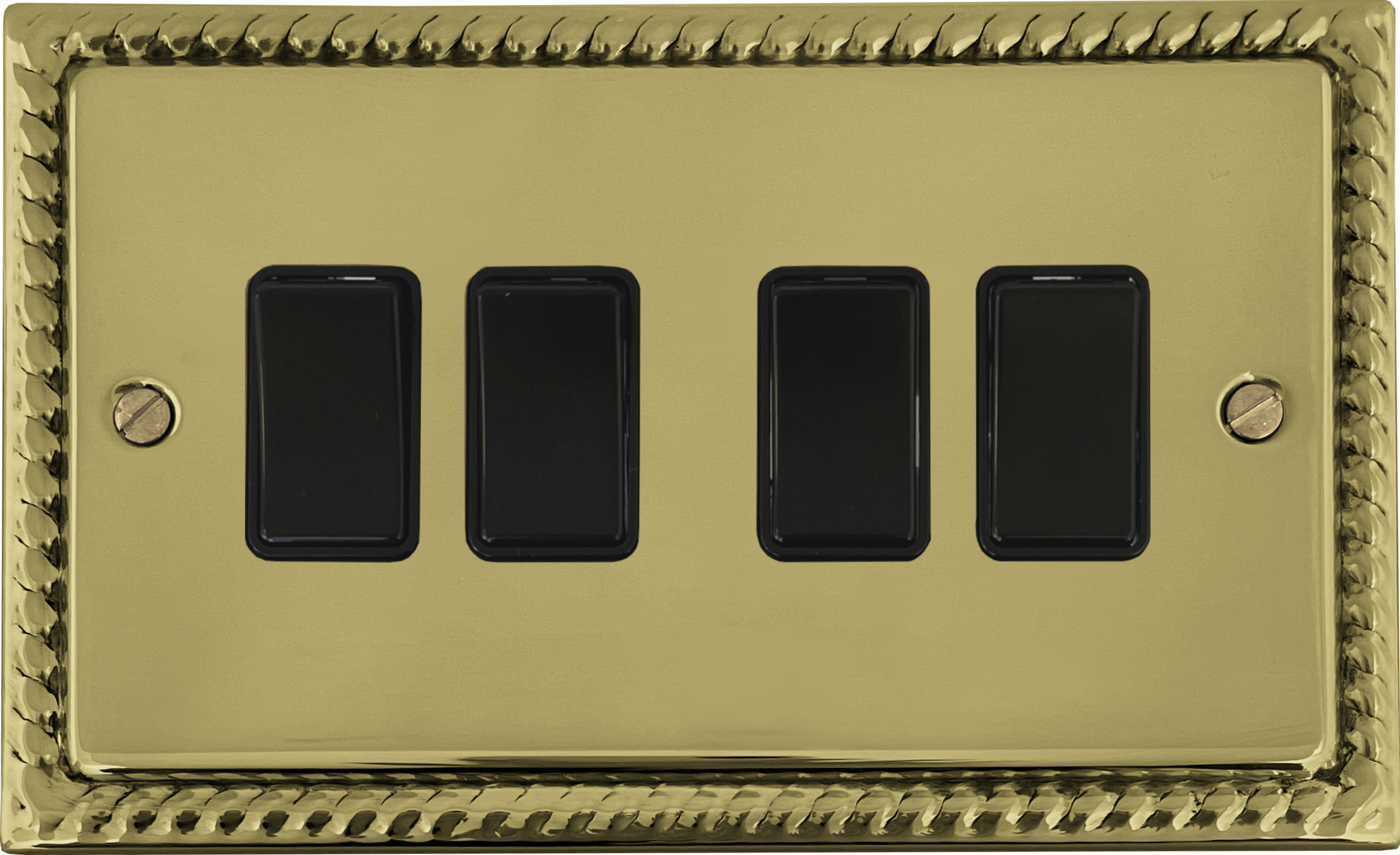 Georgian Polished Brass Light Switch (4 Gang/Black Switches) GE.4B.B