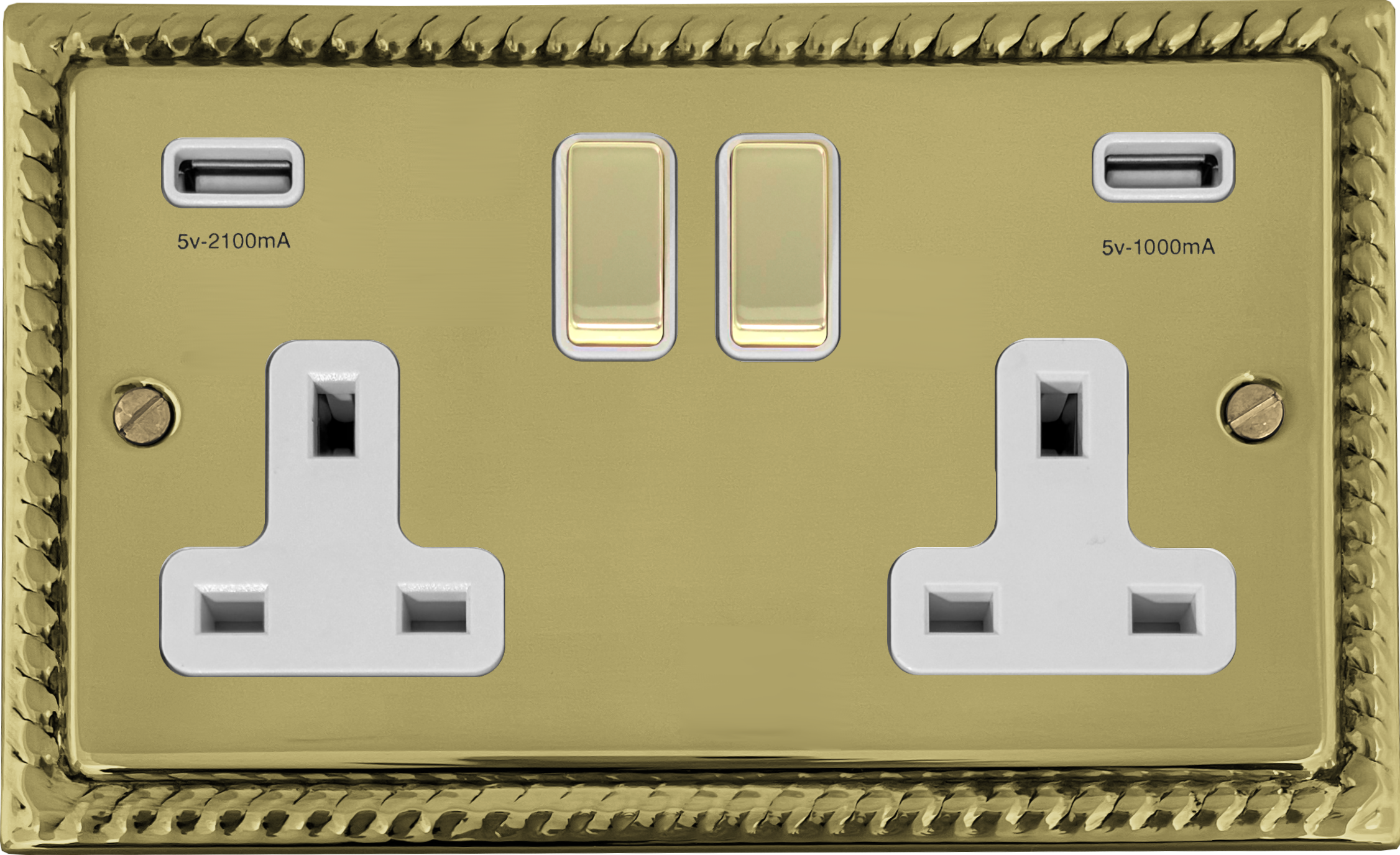 Georgian Polished Brass Socket with USB (White Inserts) GE.2910.B