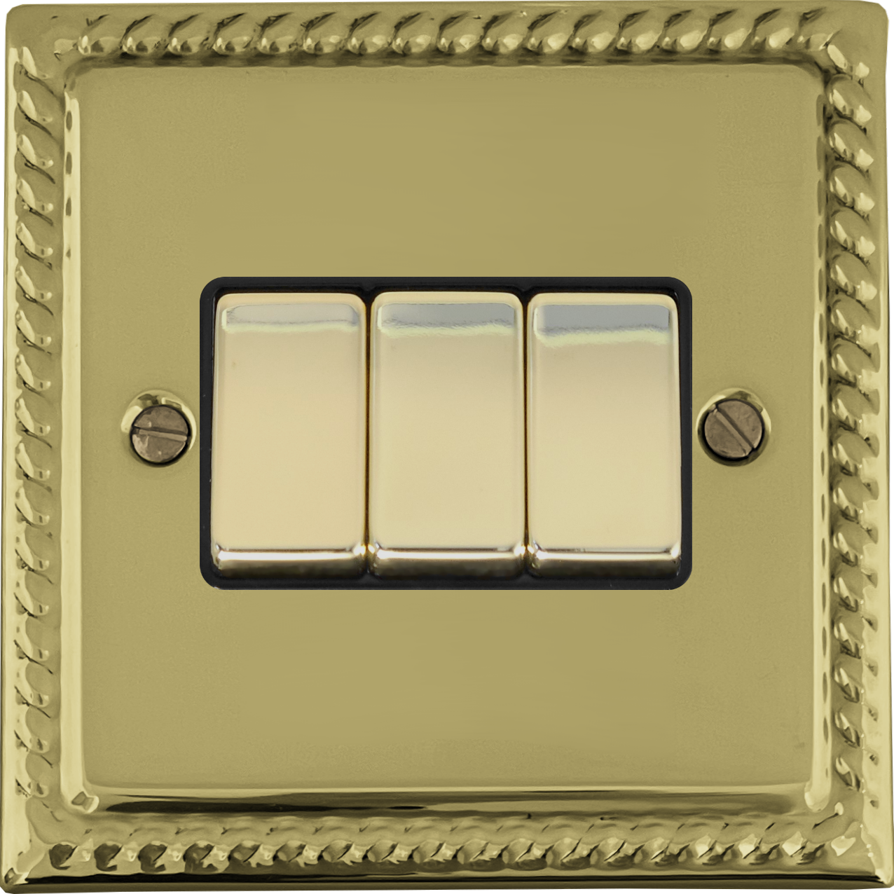 Georgian Polished Brass Switch (3 Gang) - MB303
