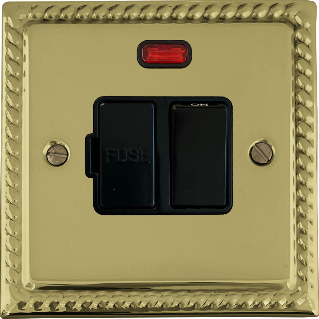 Georgian Polished Brass Switched Fused Spur with Neon (Black Switch) GE.27B.B