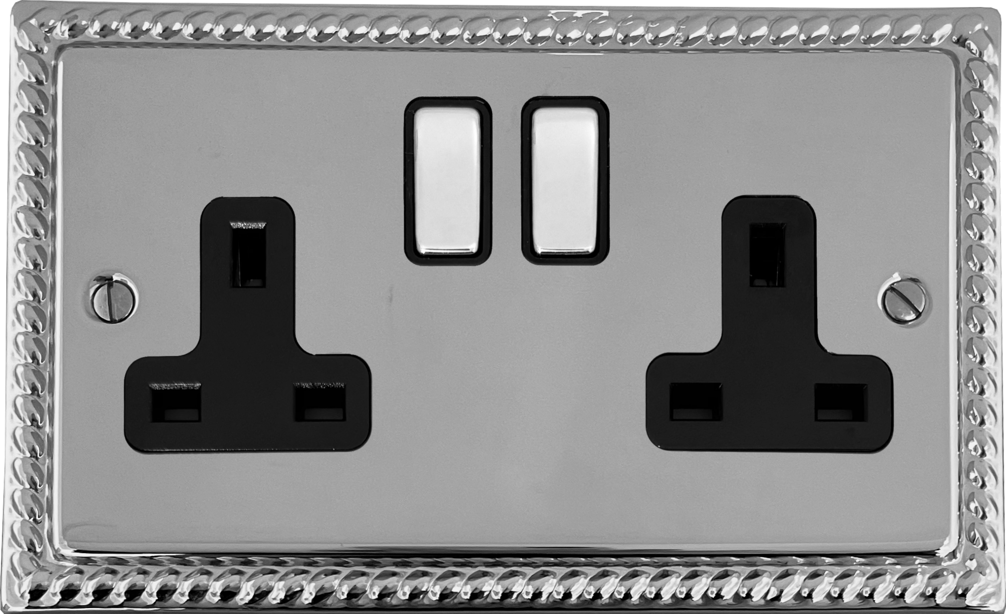 Georgian Polished Chrome Double Socket (Black Insert/Chrome Switches) GE.310.C