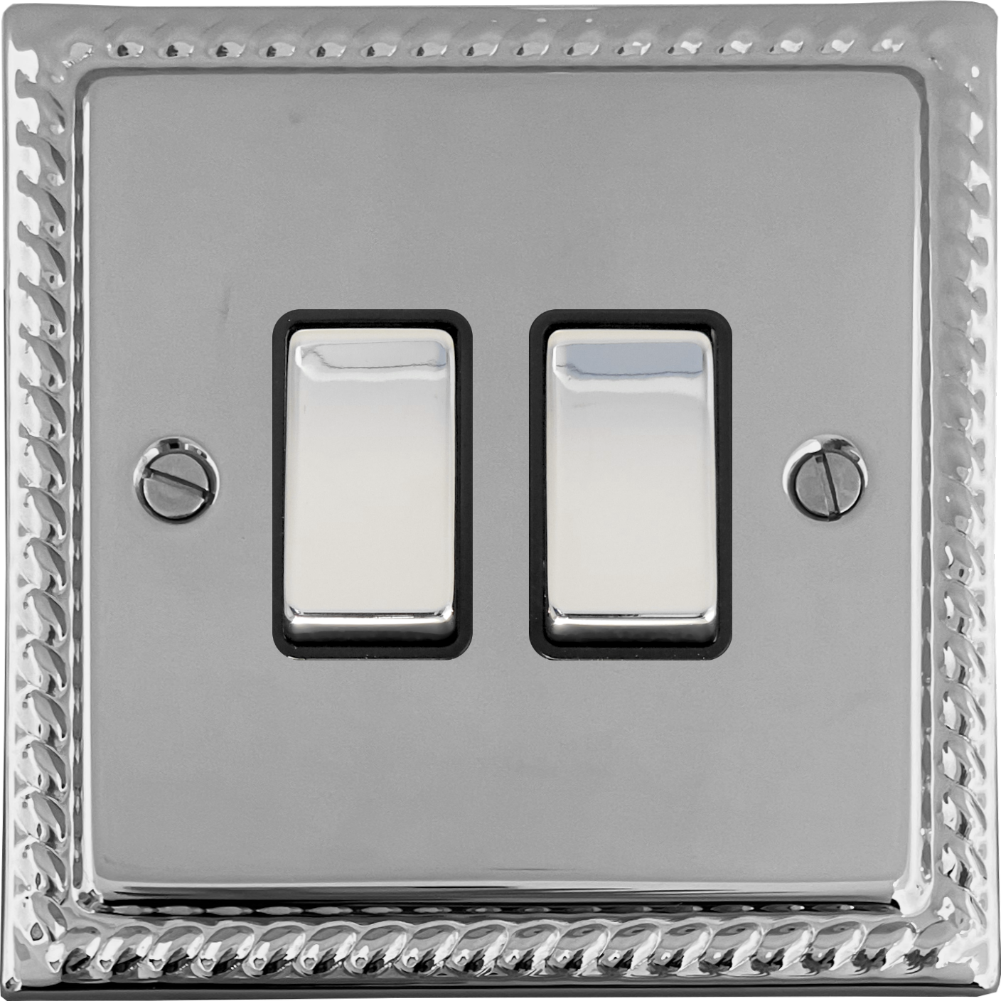 Georgian Polished Chrome Light Switch (2 Gang/Black Insert/Chrome Switches) GE.302.C