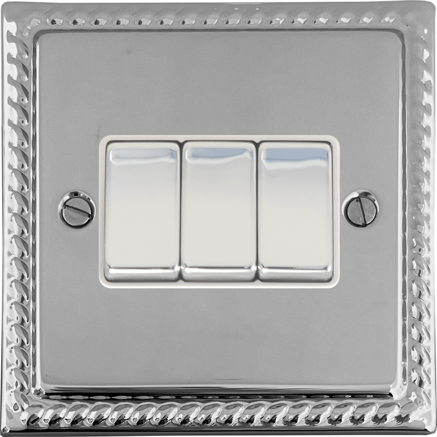 Georgian Polished Chrome Light Switch (3 Gang/White Insert/Chrome Switches) GE.203.C