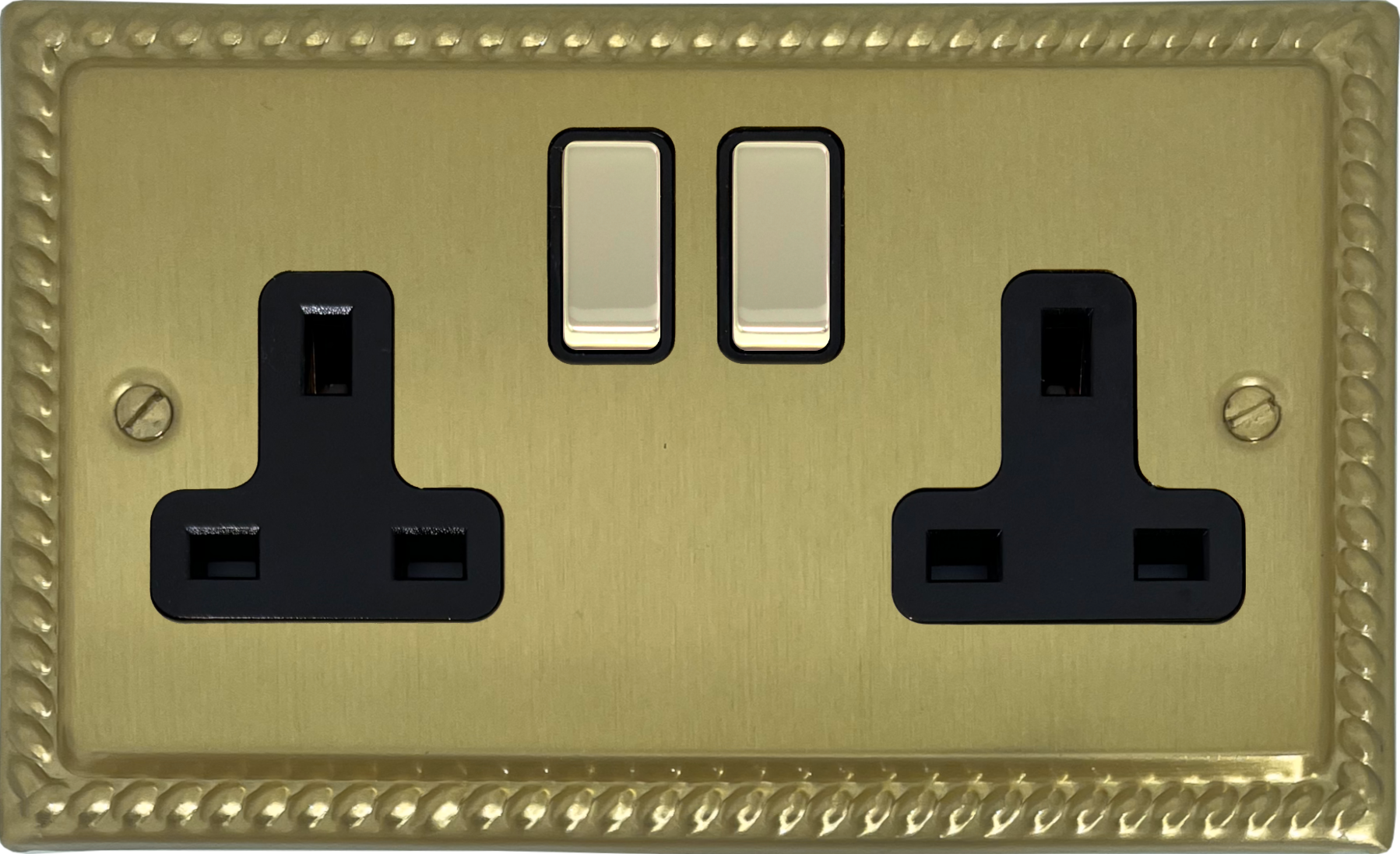 Georgian Satin Brass Double Socket (Brass Switch) - MSB310