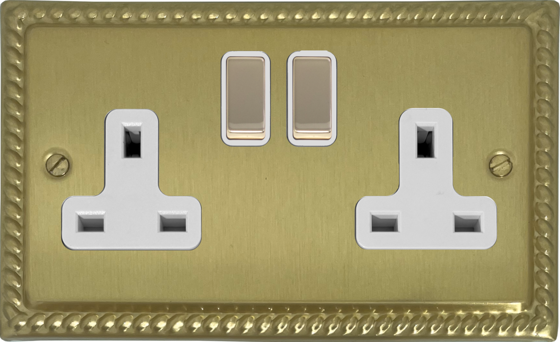 Georgian Satin Brass Double Socket (Brass Switch/White Insert) - MSB210