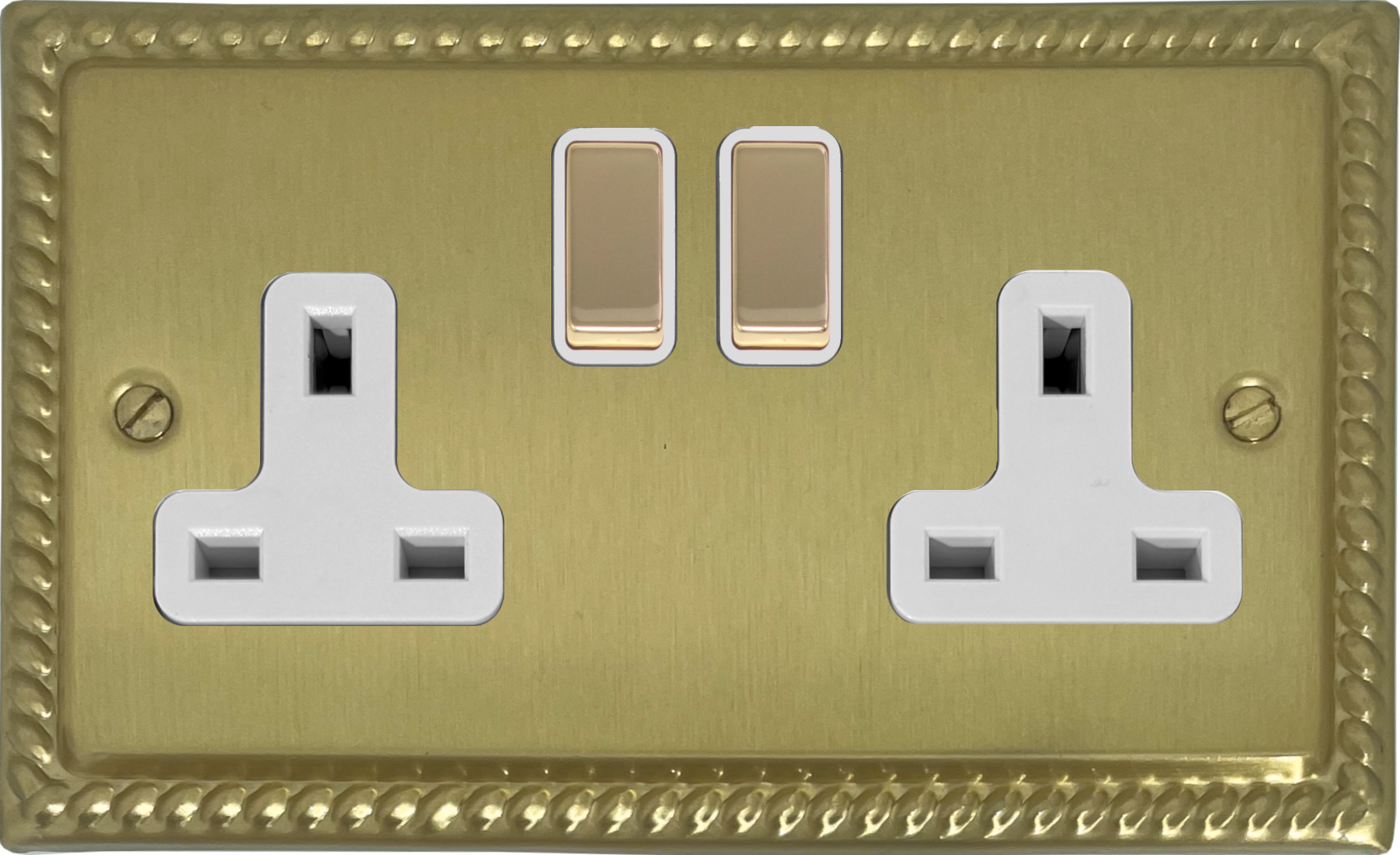 Georgian Satin Brass Double Socket (Brass Switch/White Insert) GE.210.SB