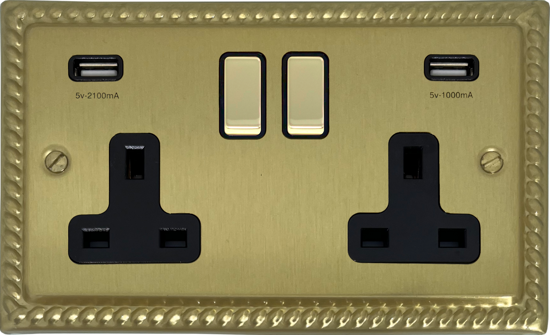 Georgian Satin Brass Double Socket with USB (Brass Switch) GE.3910.SB