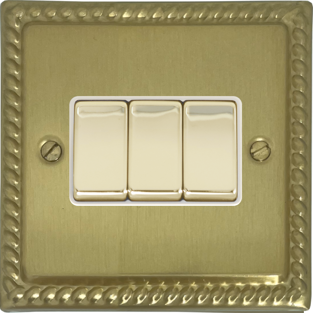 Georgian Satin Brass Light Switch (3 Gang/Brass Switches/White Inserts) GE.203.SB