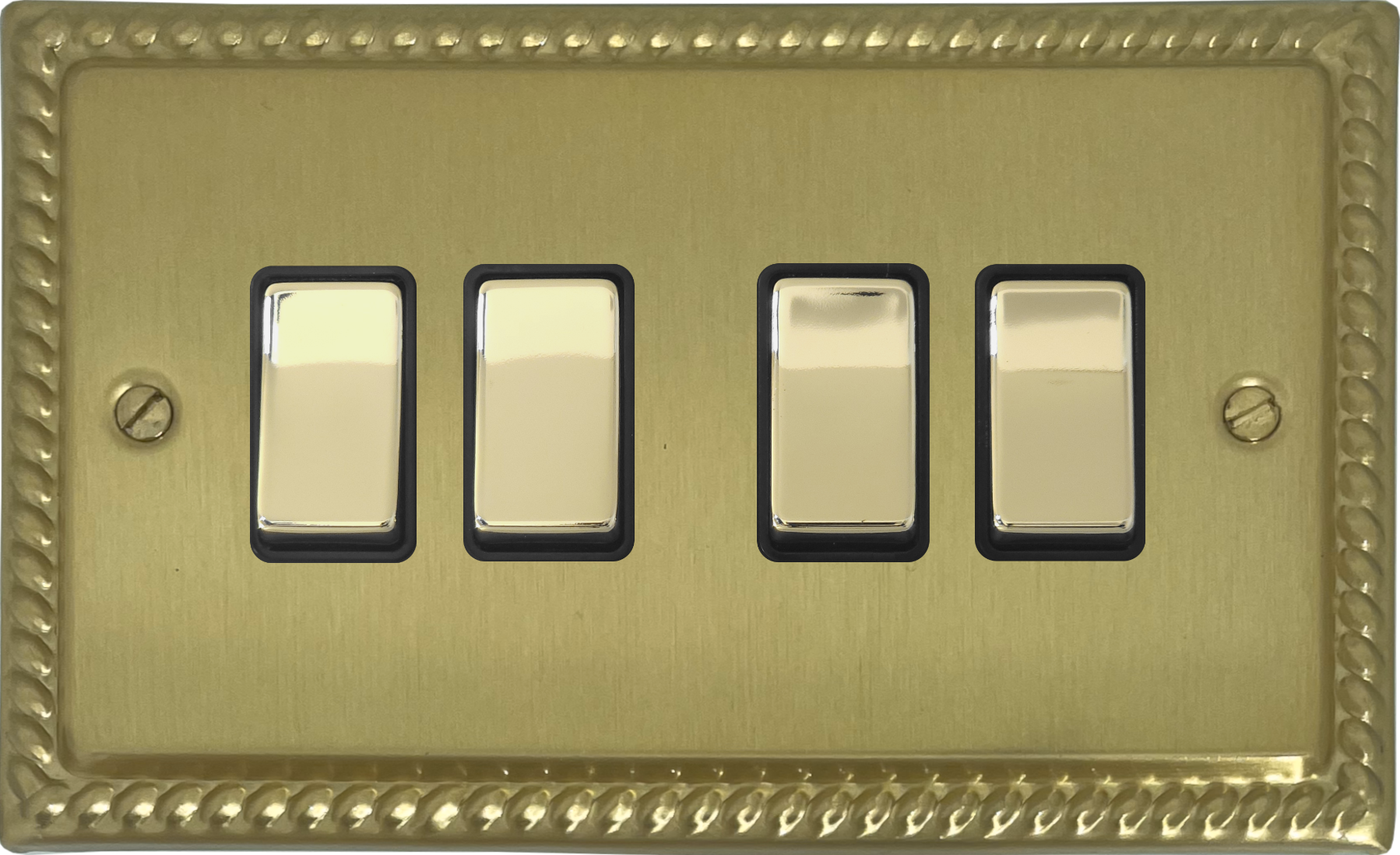 Georgian Satin Brass Light Switch (4 Gang/Brass Switches) GE.304.SB