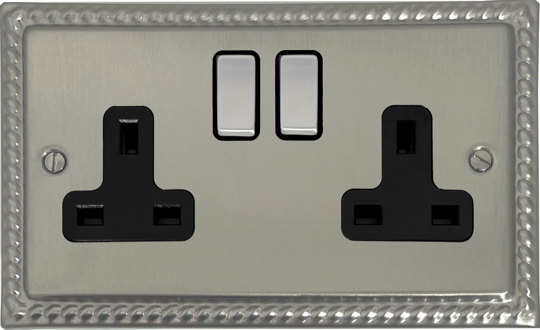 Georgian Satin Nickel Double Socket (Black Insert/Matching Switch) GE.310.SN