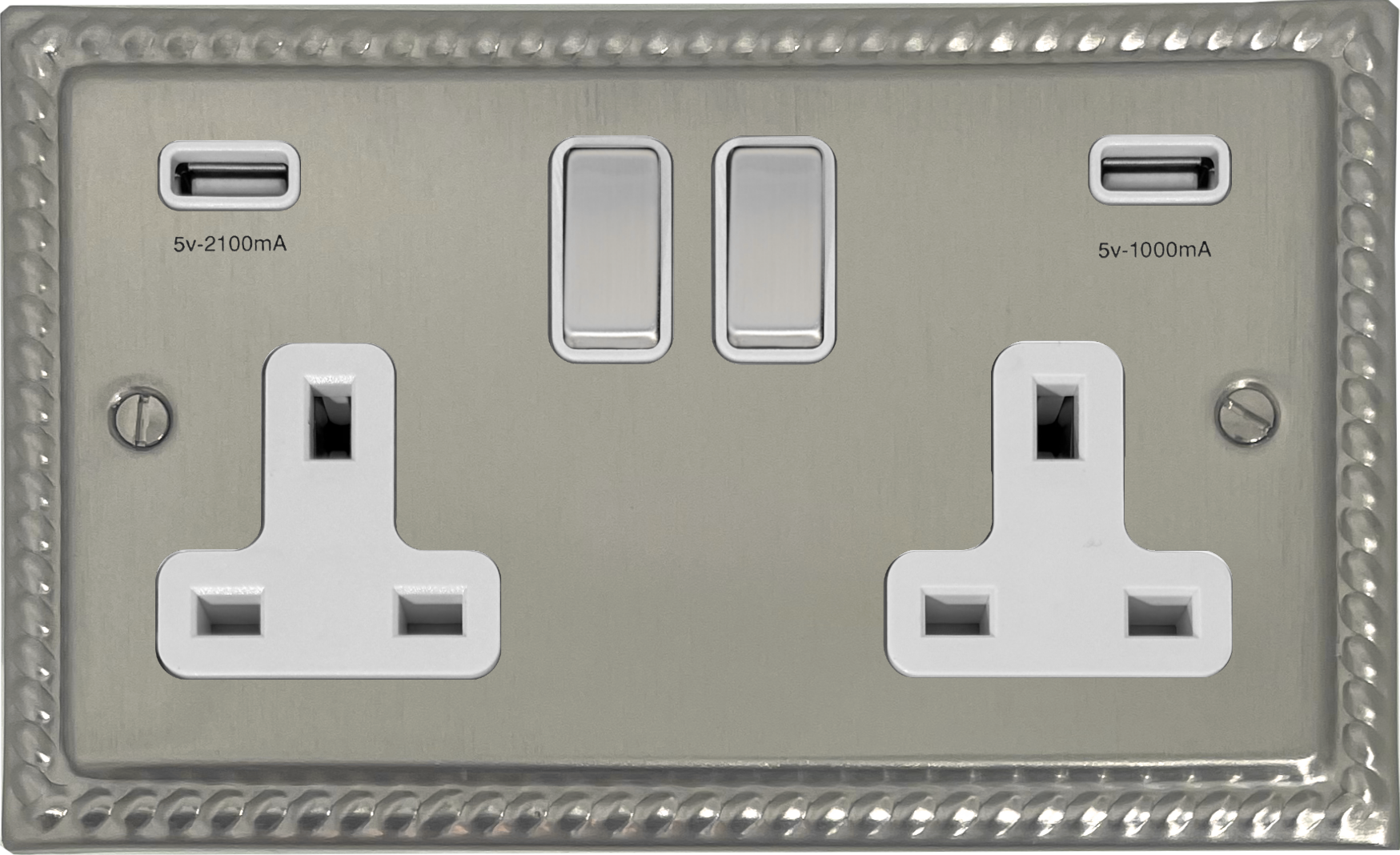 Georgian Satin Nickel Double Socket with USB (White Insert/Matching Switch) GE.2910.SN