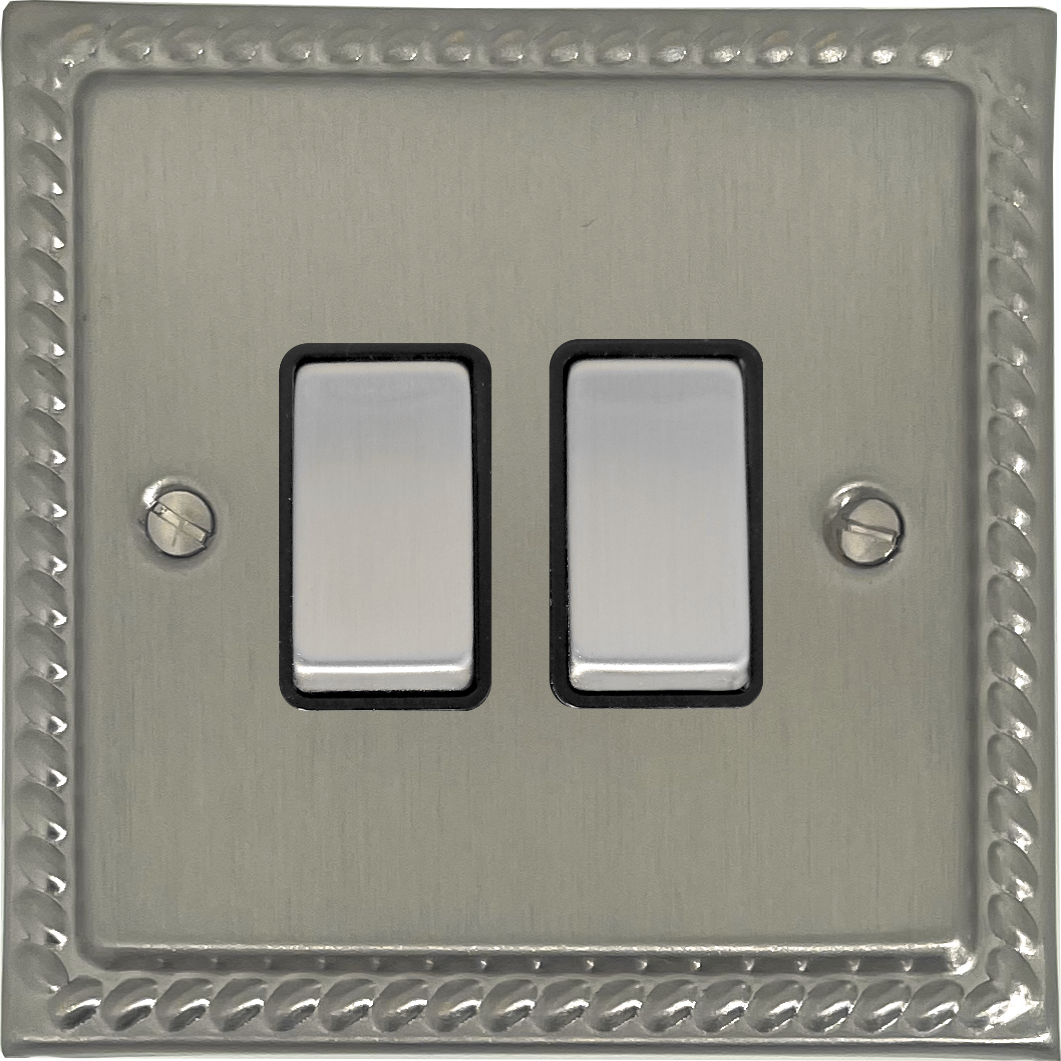 Georgian Satin Nickel Light Switch (2 Gang/Black Insert/Matching Switch) - MSN302