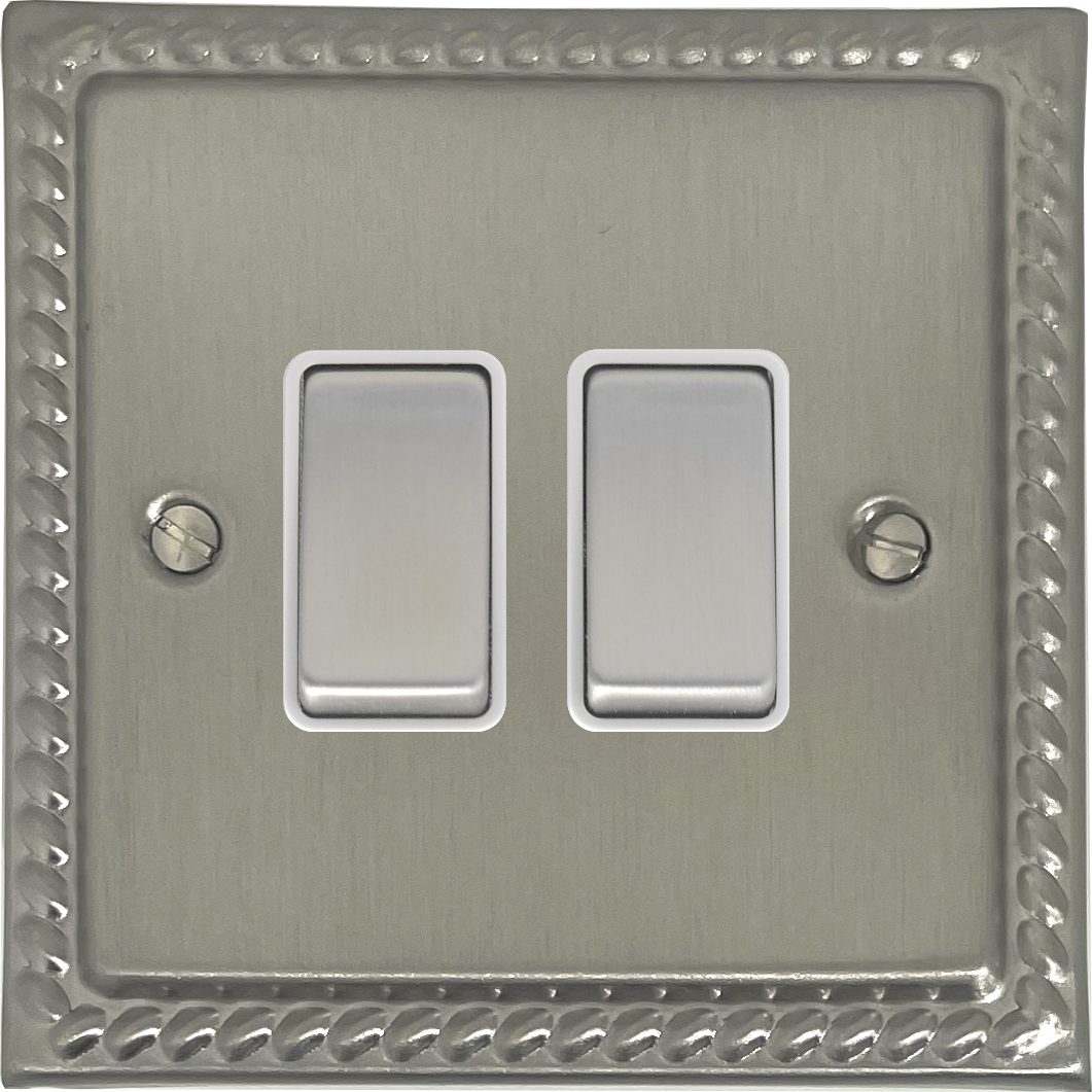 Georgian Satin Nickel Light Switch (2 Gang/White Insert/Matching Switch) GE.202.SN