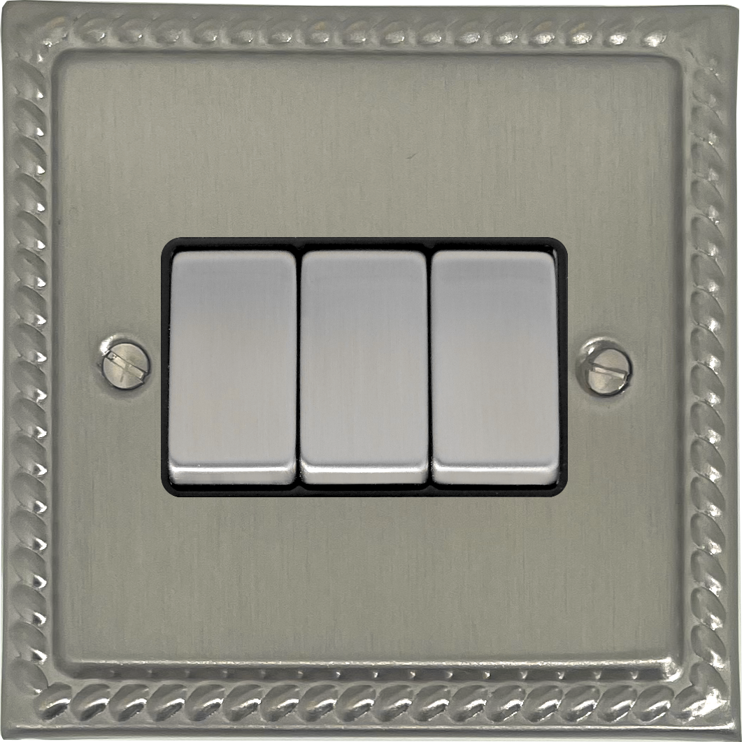 Georgian Satin Nickel Light Switch (3 Gang/Black Insert/Matching Switch) GE.303.SN