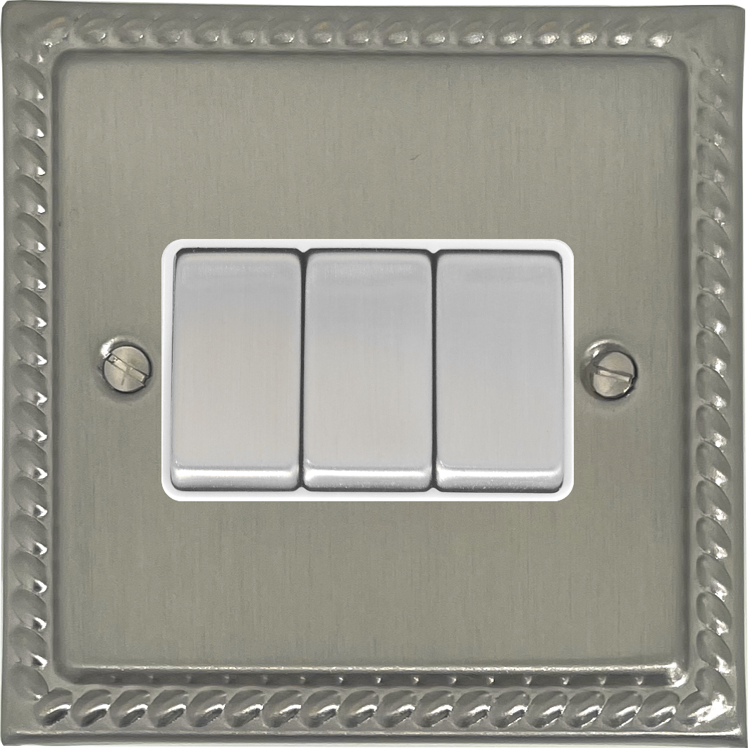 Georgian Satin Nickel Light Switch (3 Gang/White Insert/Matching Switch) - MSN203