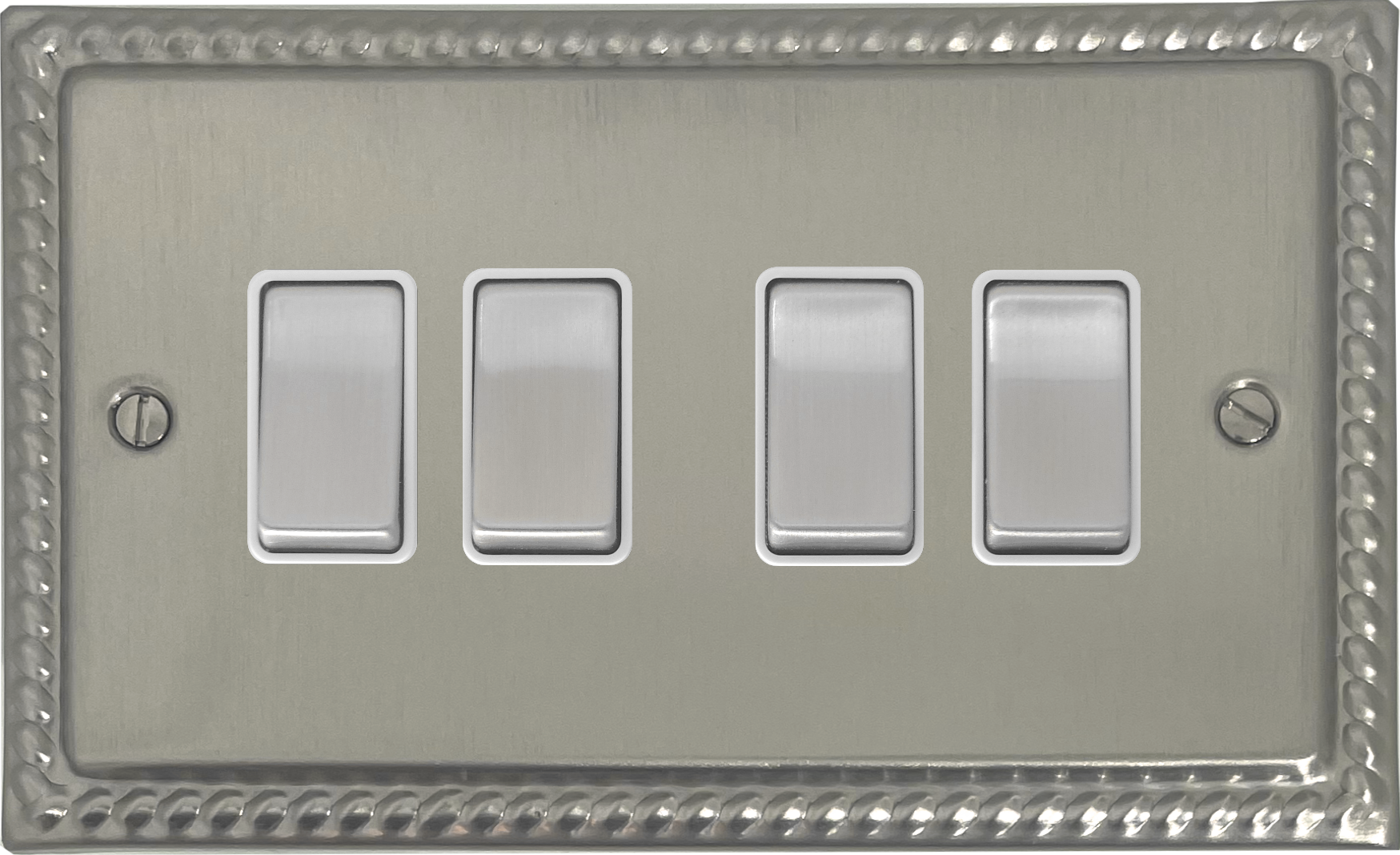 Georgian Satin Nickel Light Switch (4 Gang/White Insert/Matching Switch) GE.204.SN