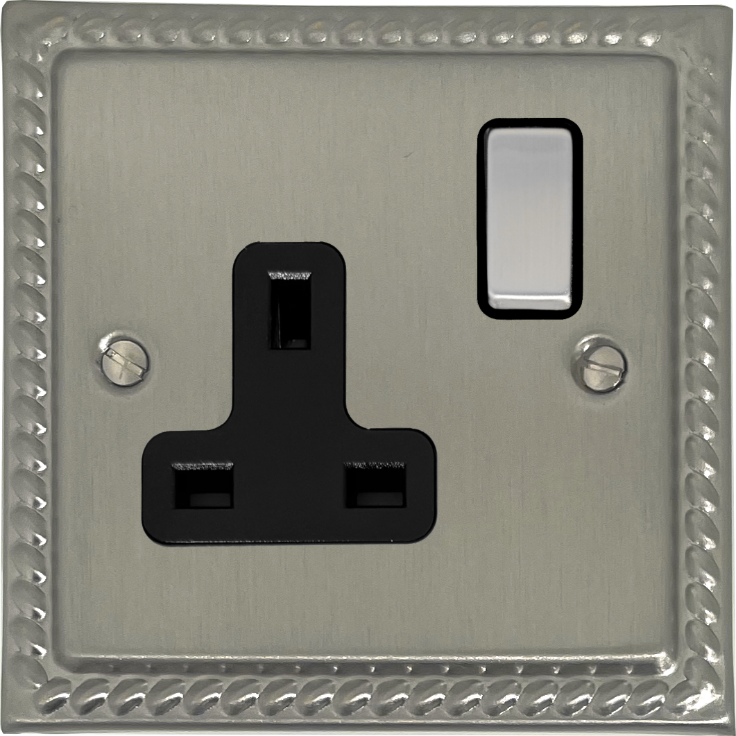 Georgian Satin Nickel Single Socket (Black Insert/Matching Switch) GE.309.SN