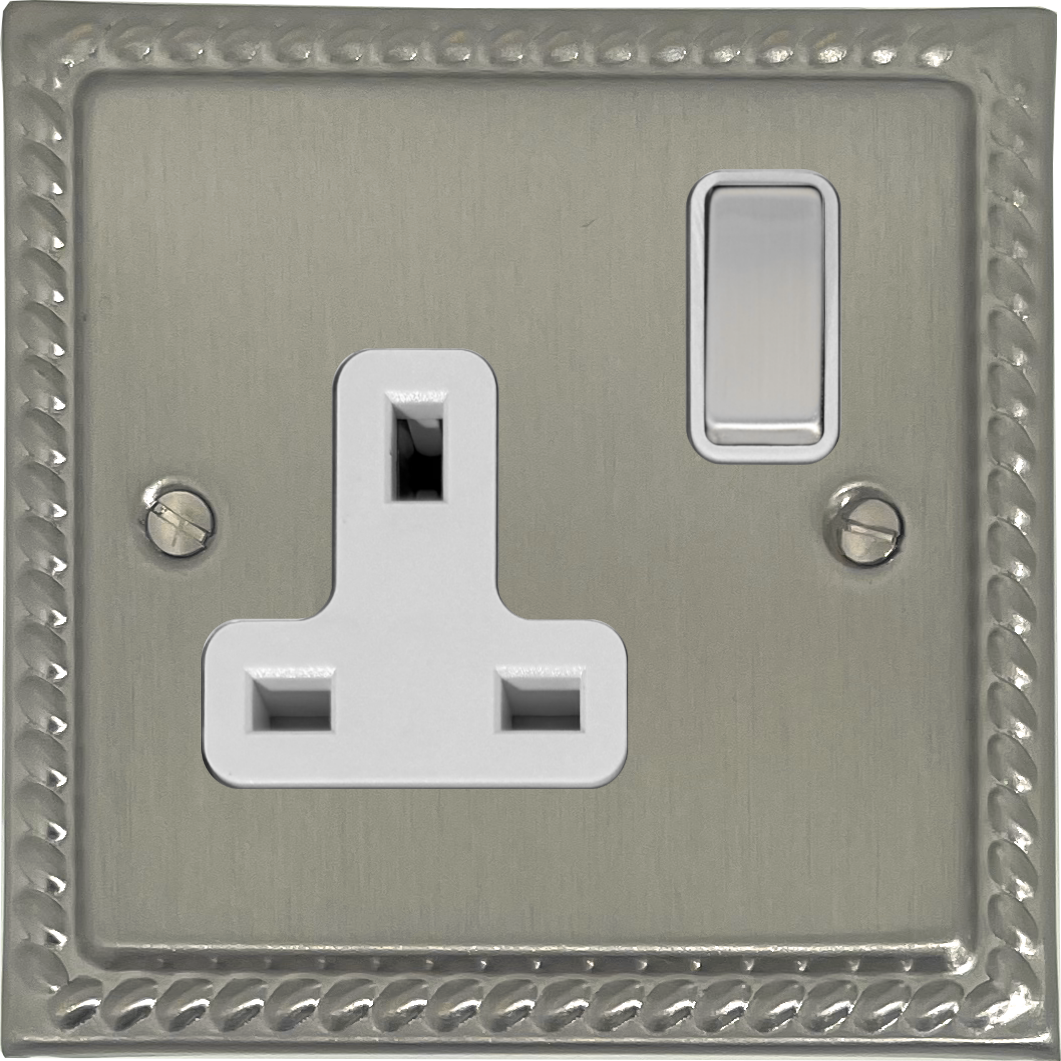Georgian Satin Nickel Single Socket (White Insert/Matching Switch) GE.209.SN