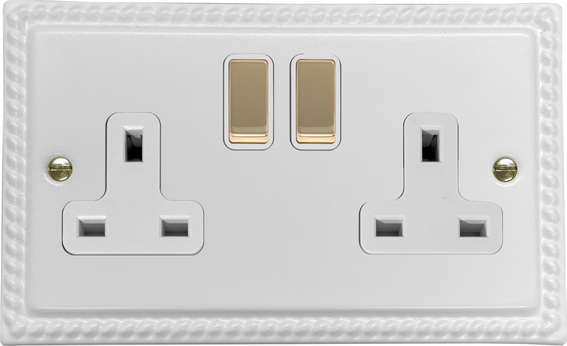 Georgian White Double Socket (White Insert/Polished Brass Switches) GE.210PB.W