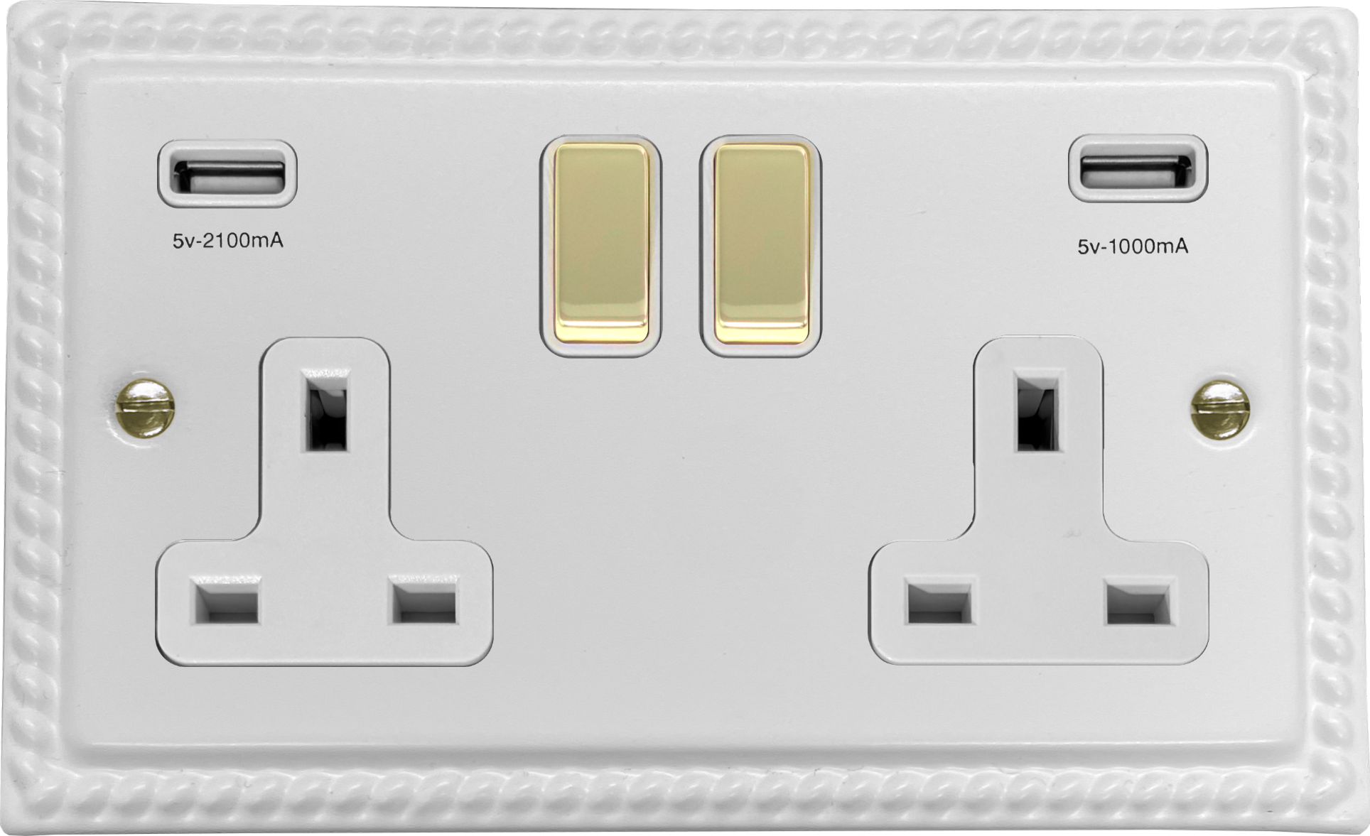 Georgian White Double Socket with USB (White Inserts/Polished Brass Switches) GE.2910PB.W