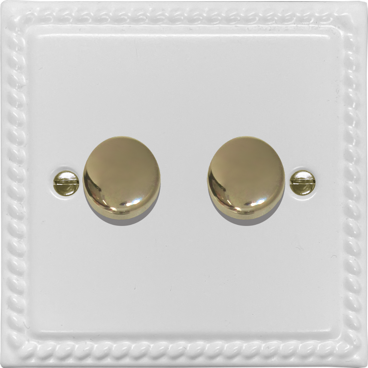 Georgian White LED Dimmer (2 Gang/Brass Caps) - MW522-PB