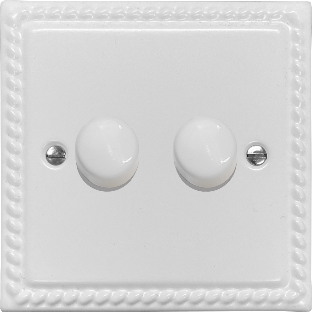Georgian White LED Dimmer (2 Gang/White Caps) GE.522W.W