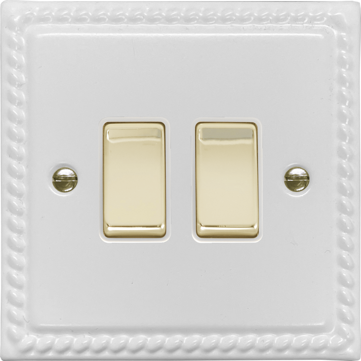 Georgian White Light Switch (2 Gang/White Insert/Polished Brass Switches) GE.202PB.W