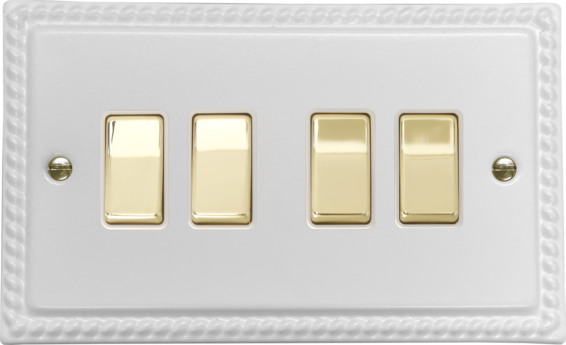 Georgian White Light Switch (4 Gang/White Insert/ Polished Brass Switches) GE.204PB.W