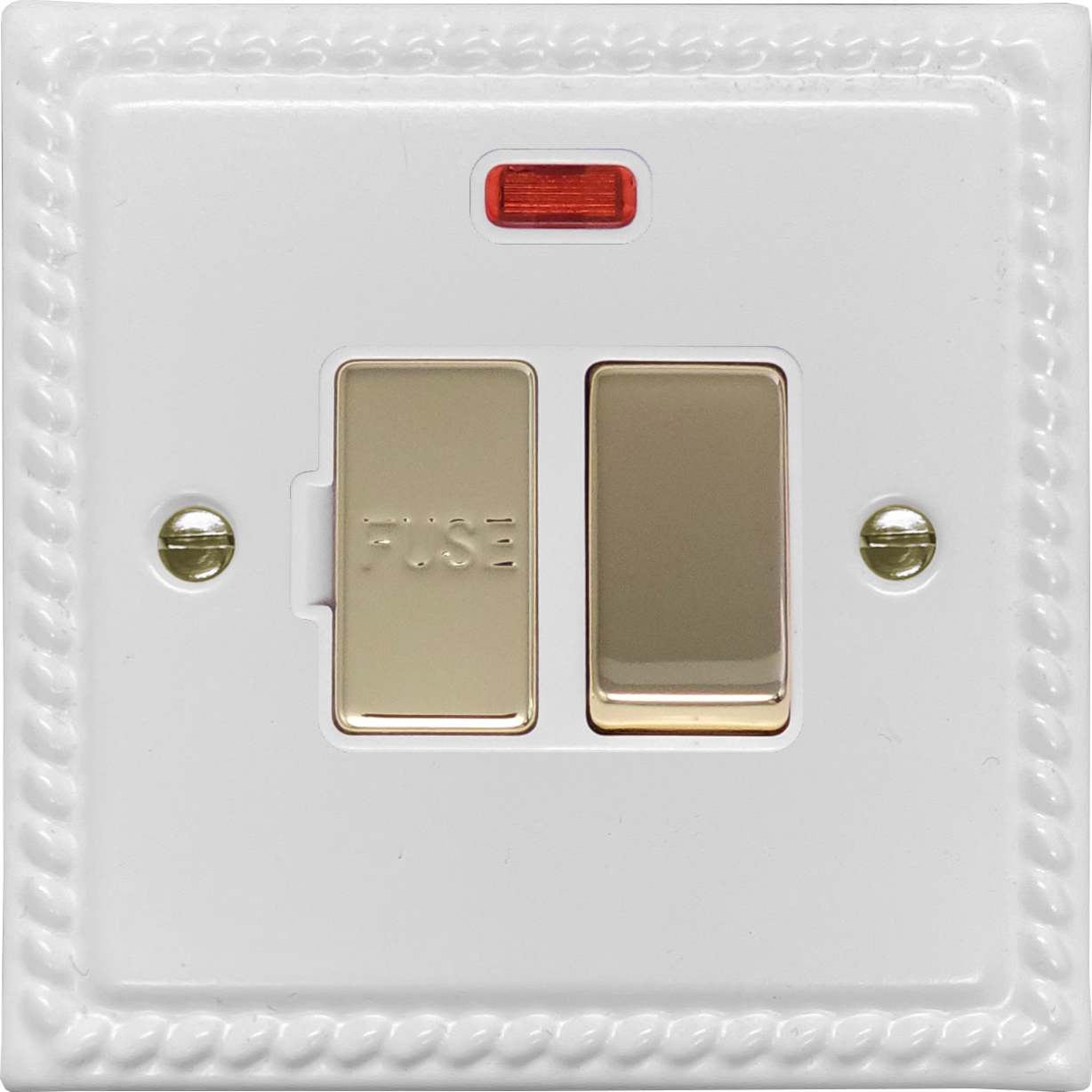 Georgian White Switched Fused Spur with Neon (White insert/Polished Brass Switch) GE.227PB.W