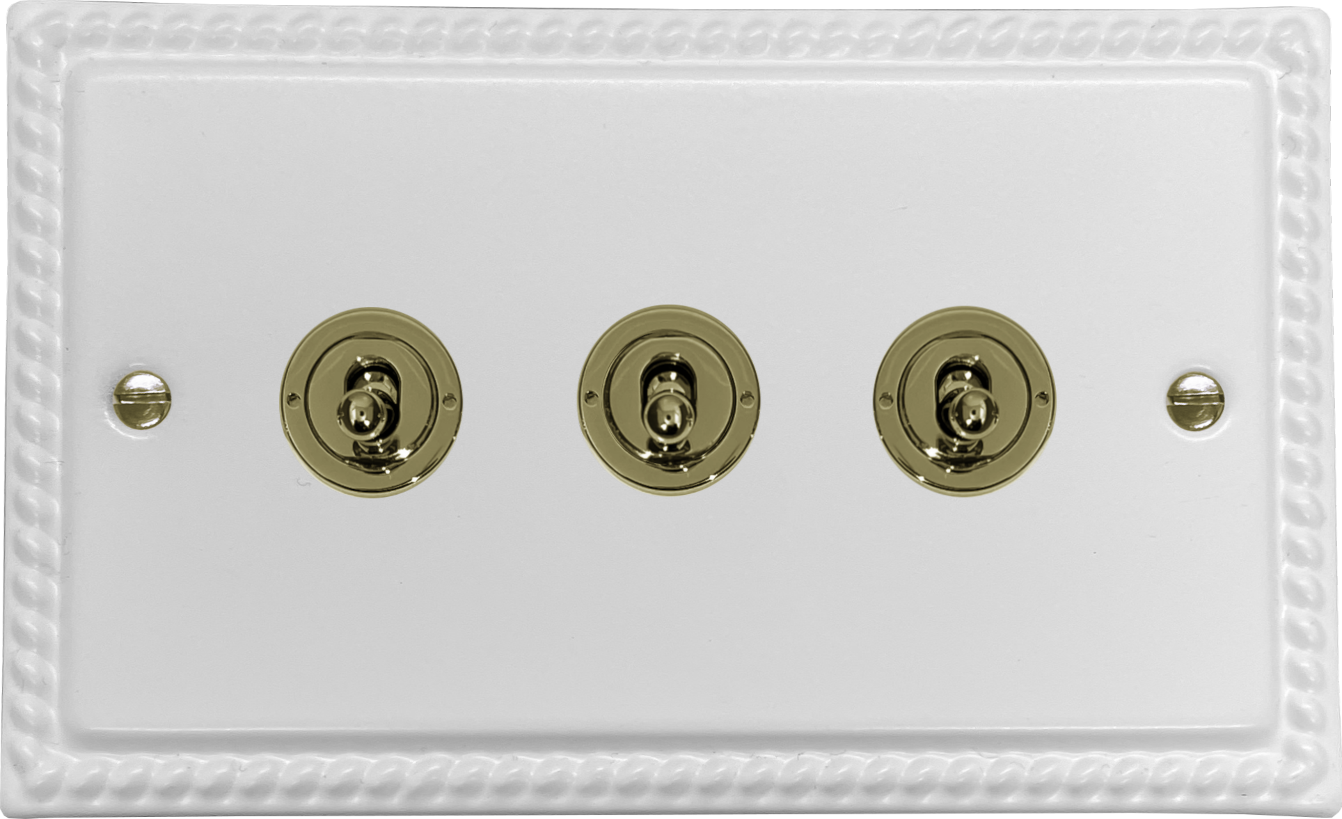 Georgian White Toggle Switch (3 Gang/Polished Brass Switches) GE.383PB.W