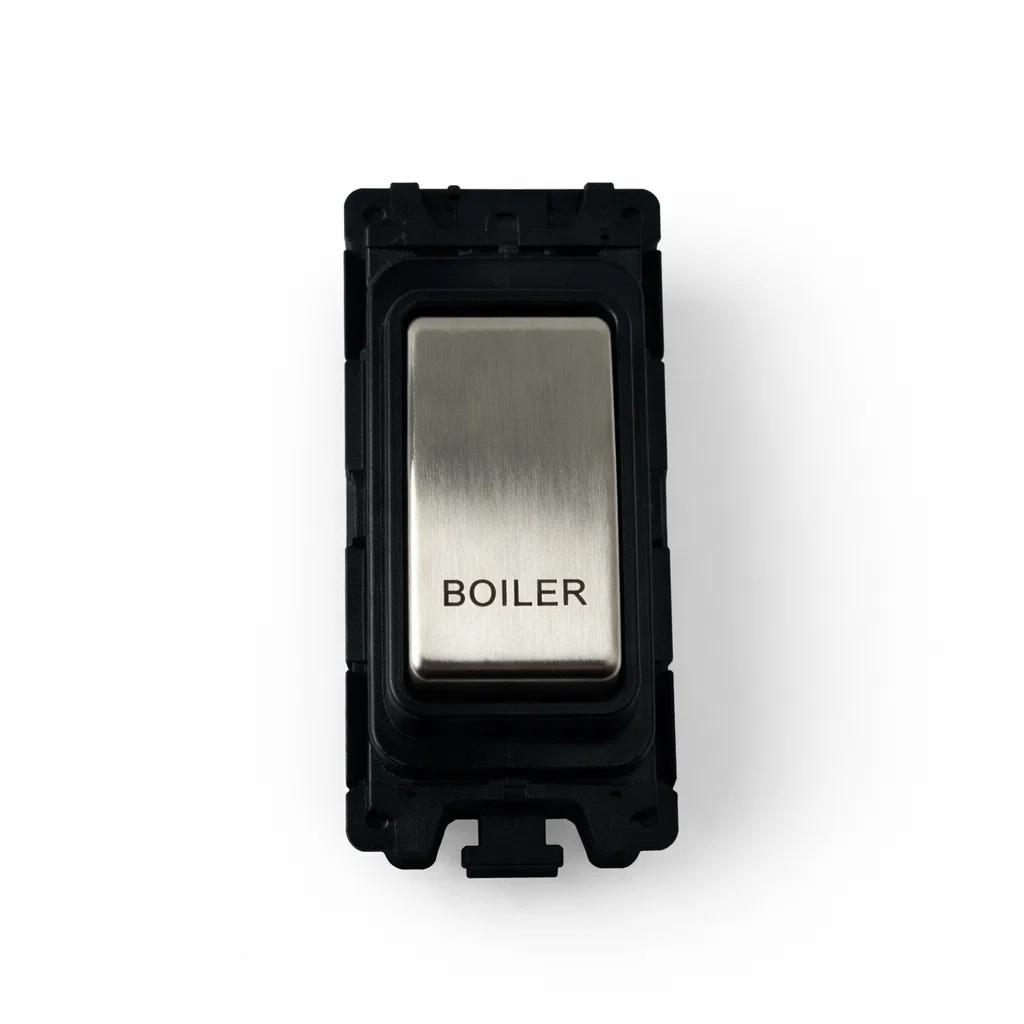 G&H Electrical Grid Switch Brushed Steel and Black DP Switch - 'Boiler' G-476SS-BR