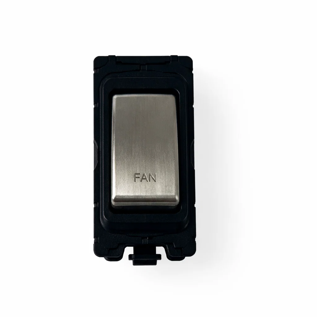 G&H Electrical Grid Switch Brushed Steel and Black DP Switch - 'Fan' G-476SS-FN