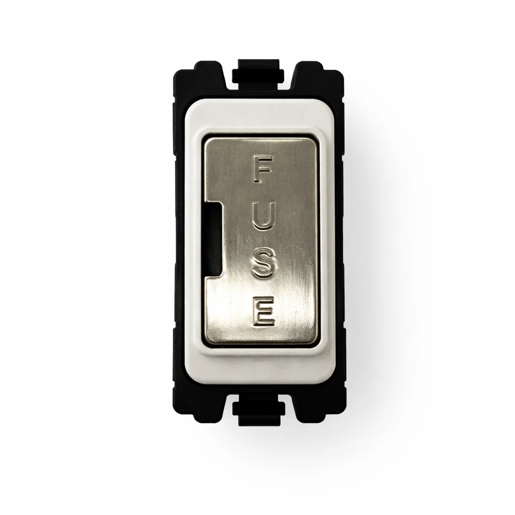 G&H Electrical Grid Switch Brushed Steel and White 13A Fuse Holder G-590SS